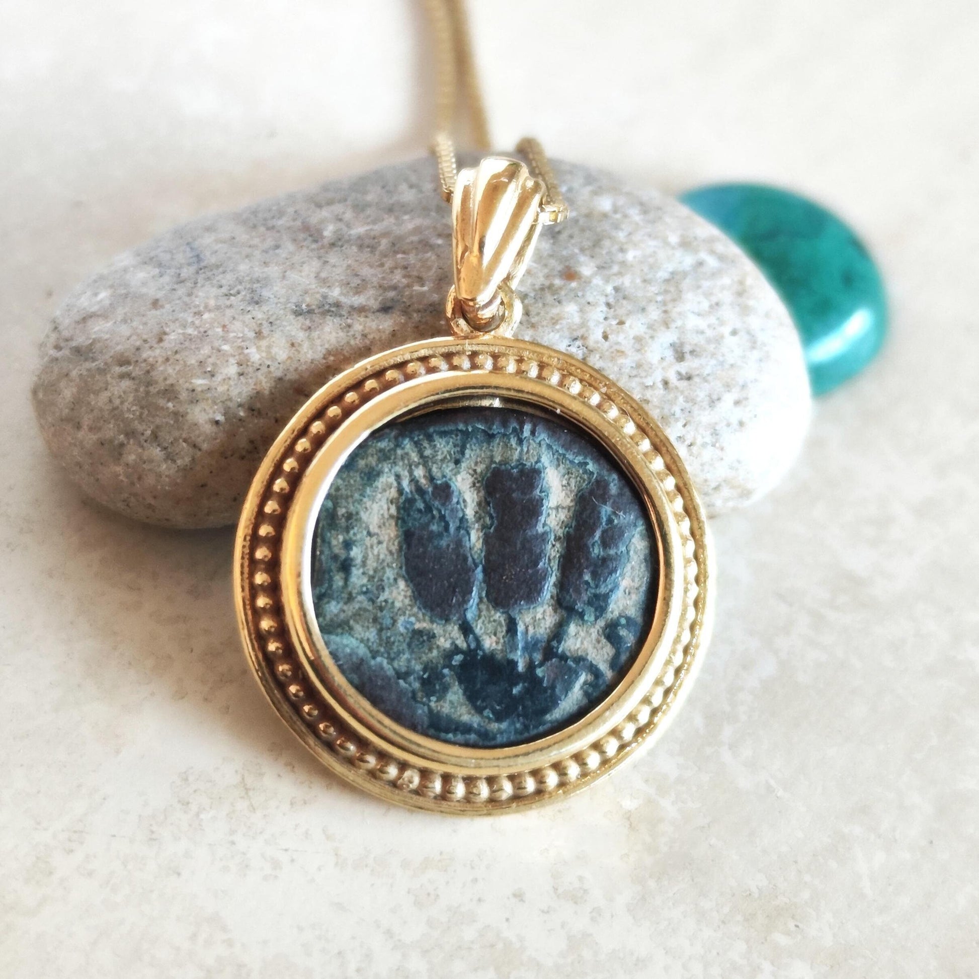 Ancient Roman Coin Gold Plated Necklace, King Herod Agrippa Bronze Coin, Vintage Coin Medallion, Jewish Judea Pendant, Women Coin Necklace