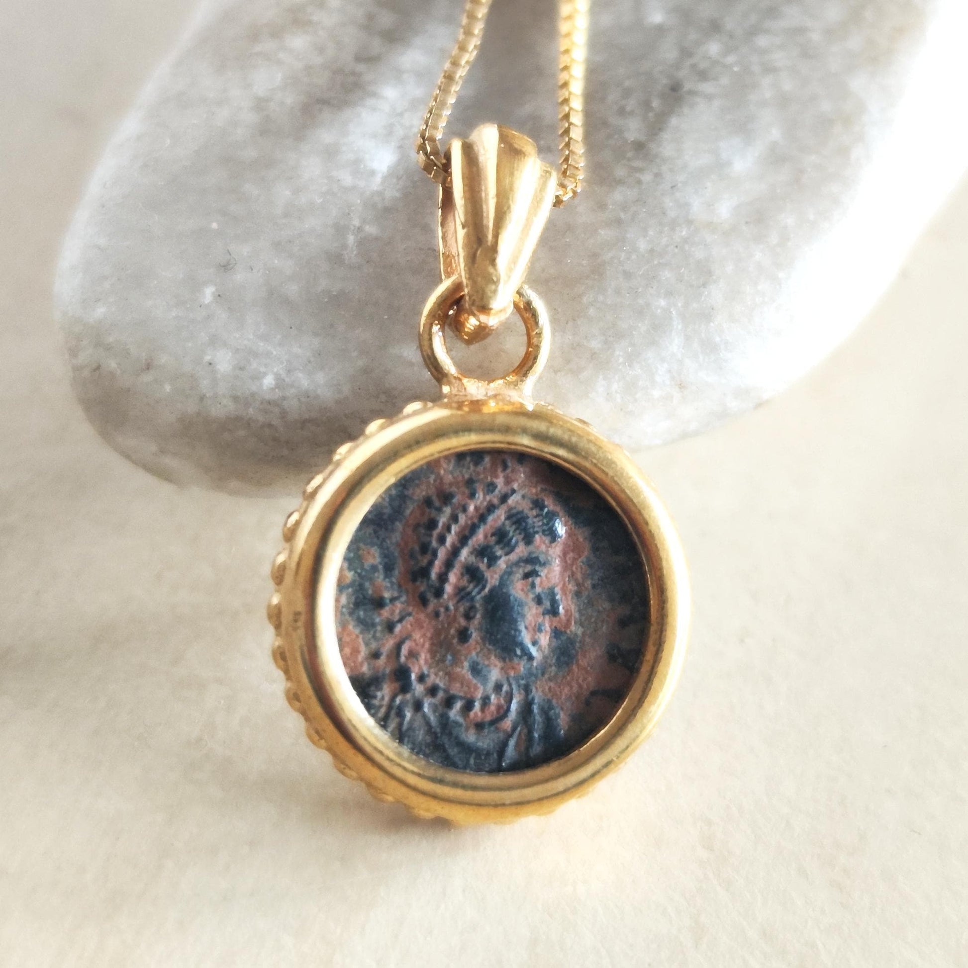 Ancient Roman Empress Coin Necklace, St. Aelia Flaccilla Small Medallion, Christian Orthodox Jewelry, Emperor Theodosius Arcadius Honorius