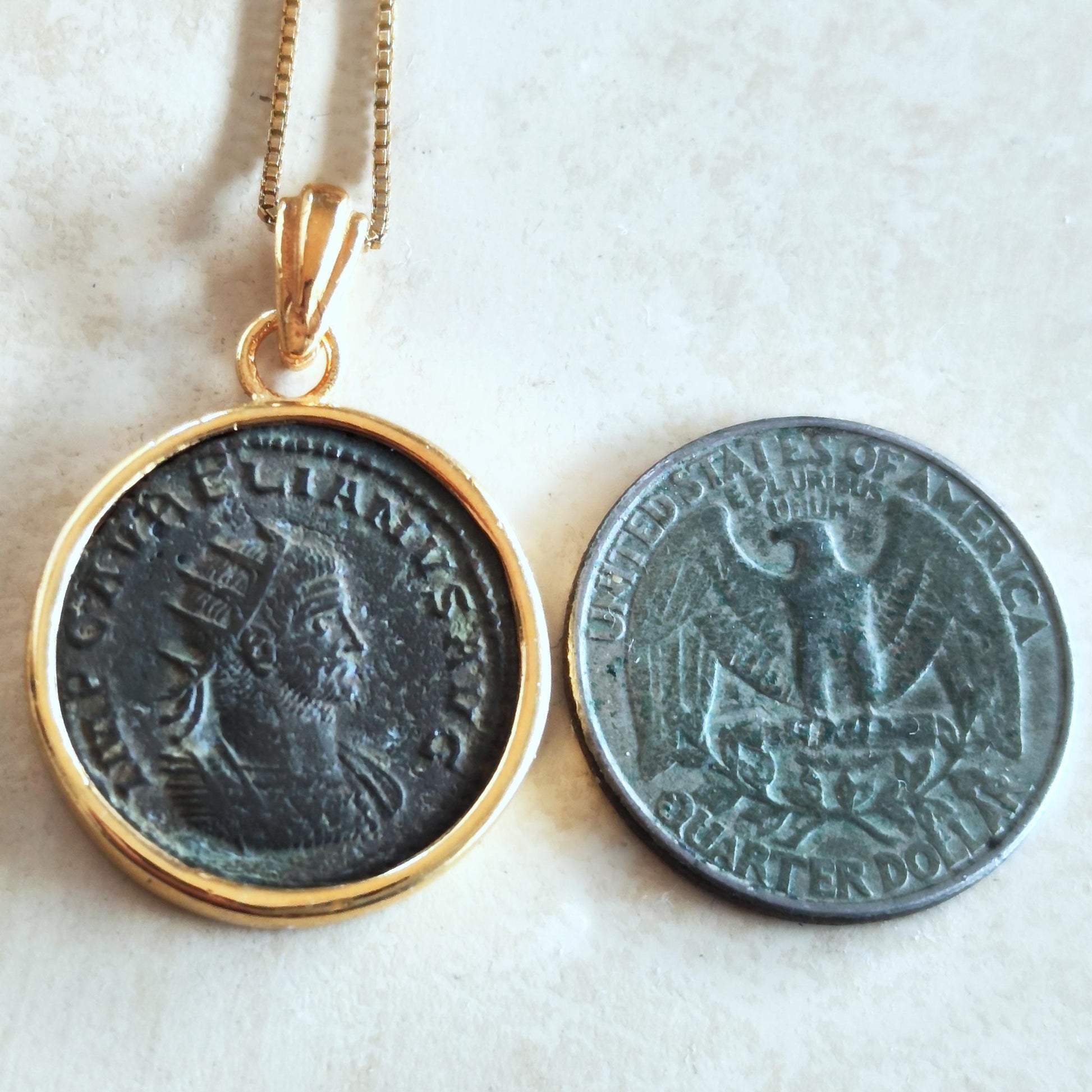 Antique Roman Aurelian Coin Pendant, Authentic Roman Coin Necklace, Real Ancient Coin Necklace, Gold Plated Vintage Pendant