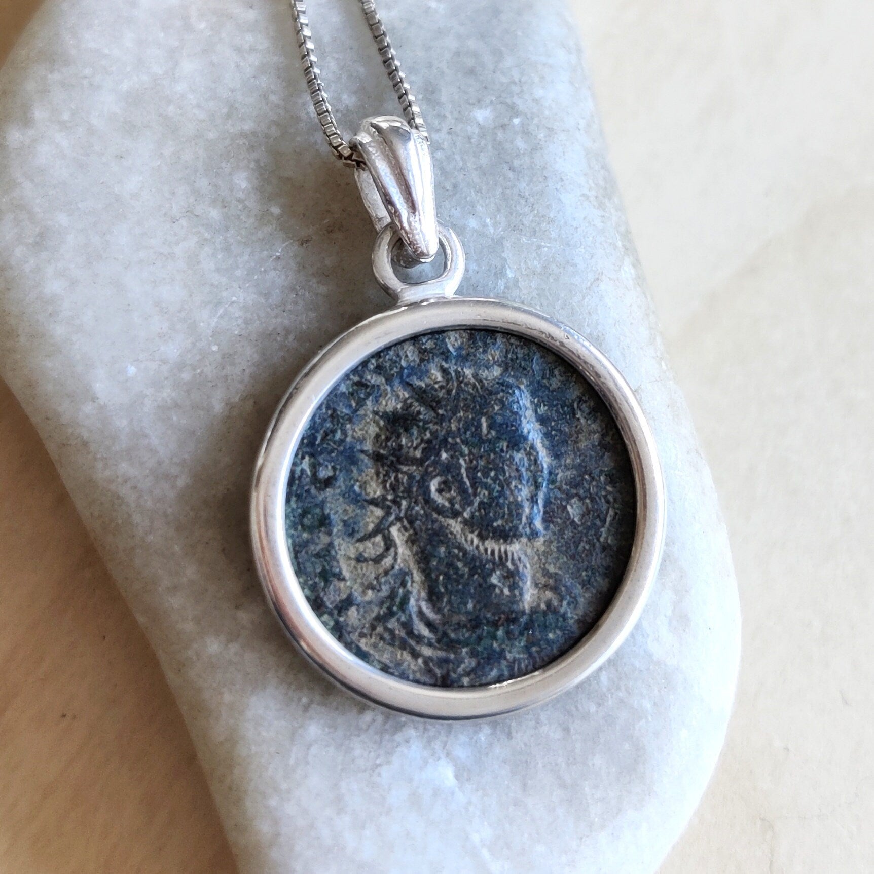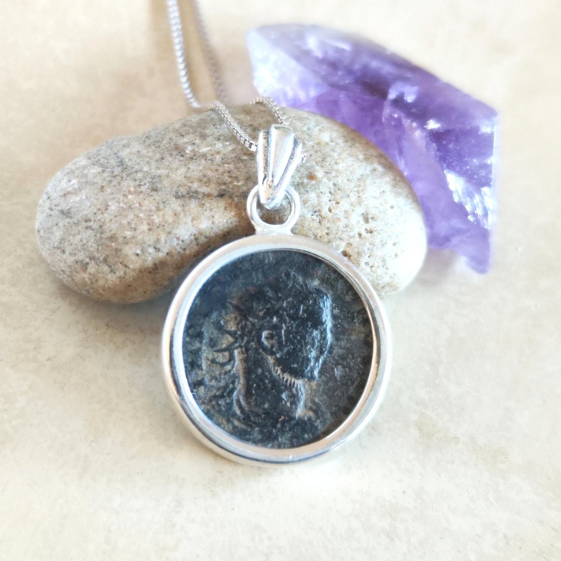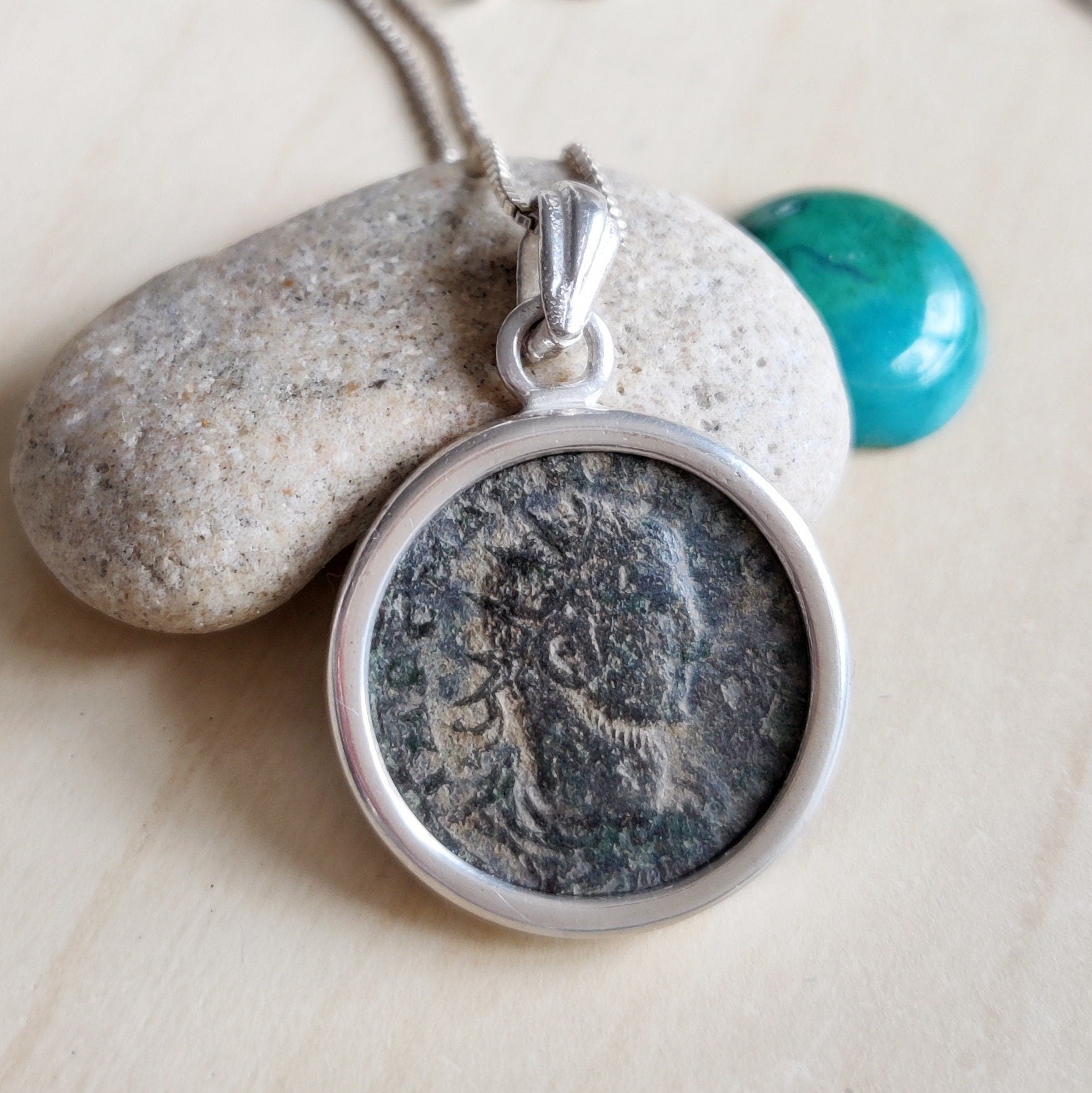 Antique Roman Empire Coin Silver Necklace, 3rd Century Valerian Pendant, Vintage Style Jewelry