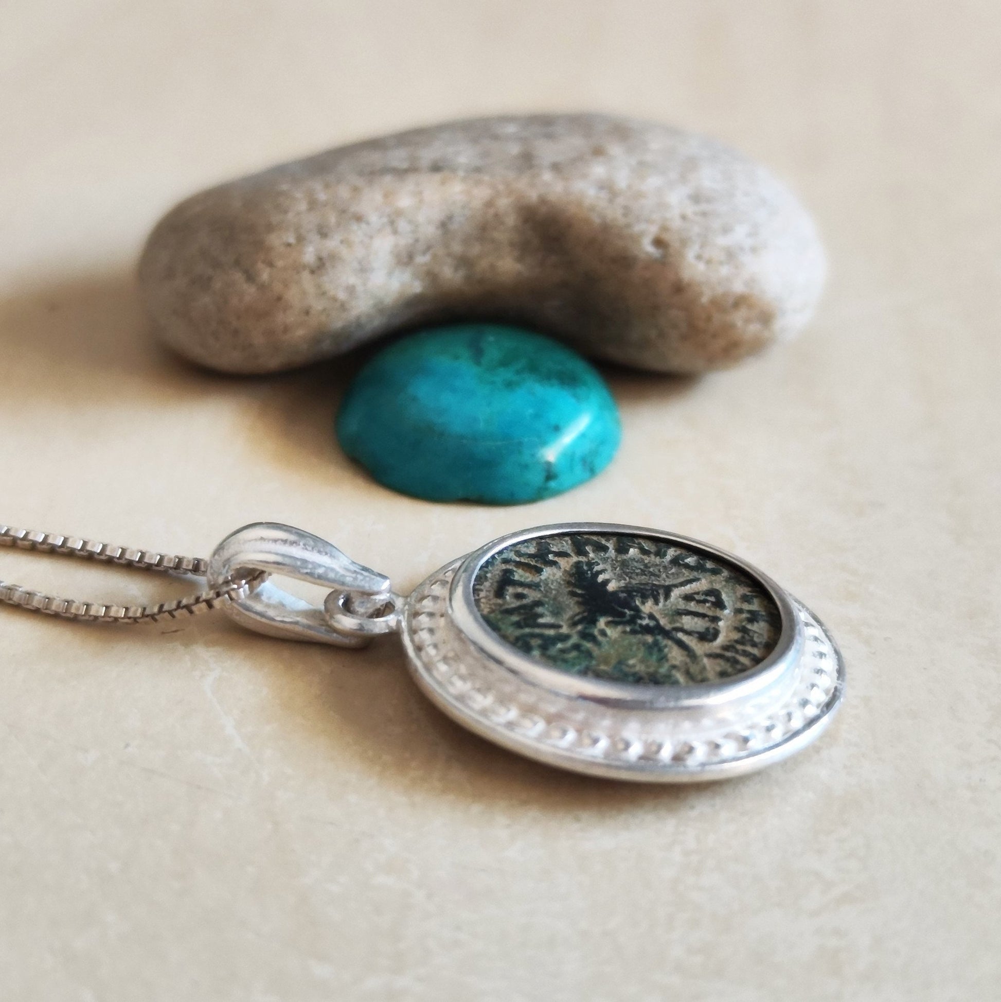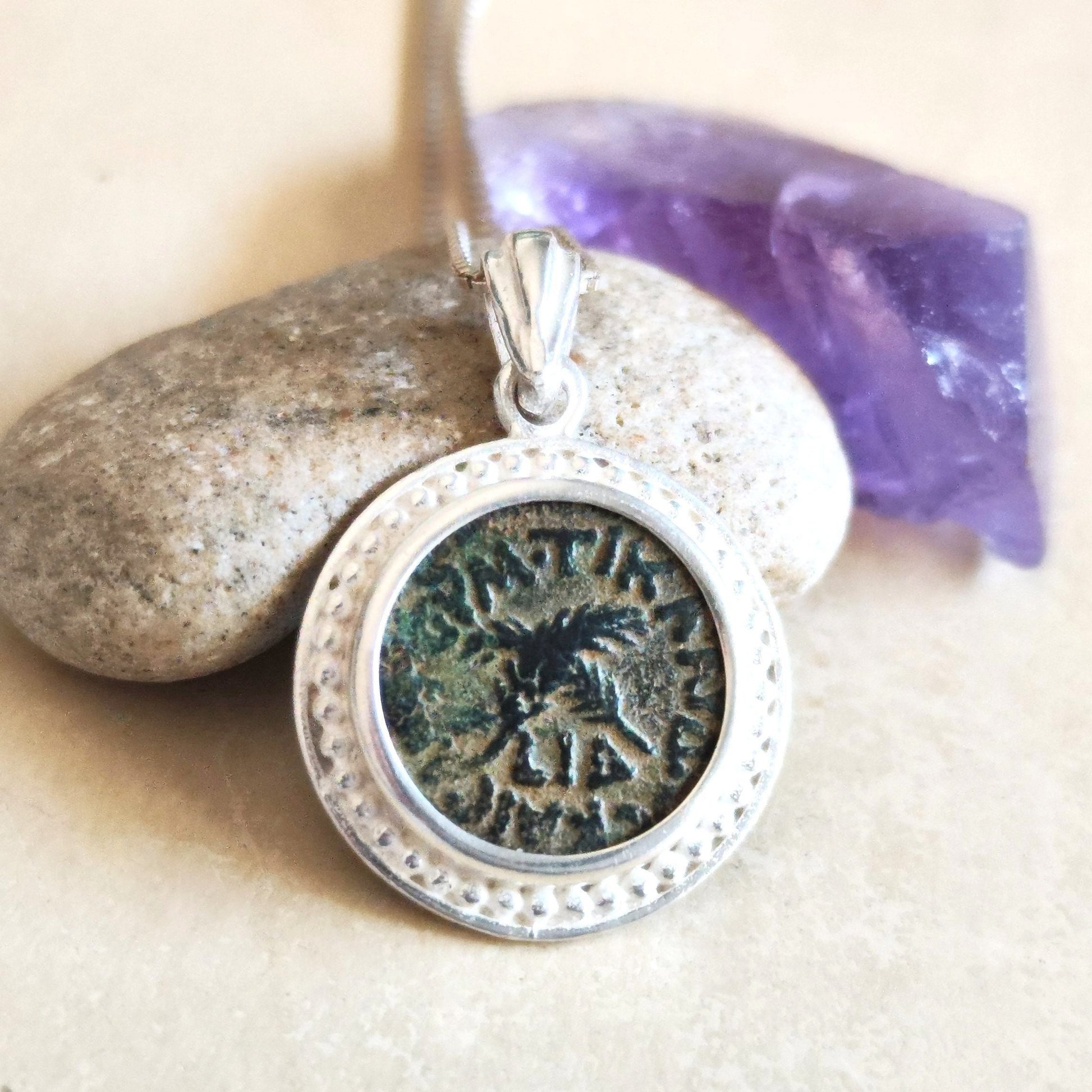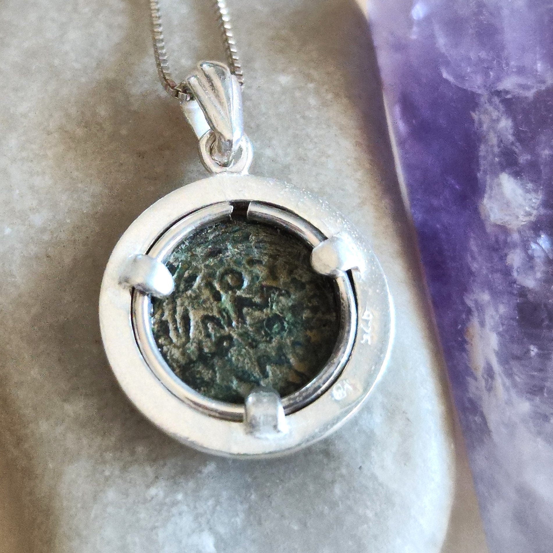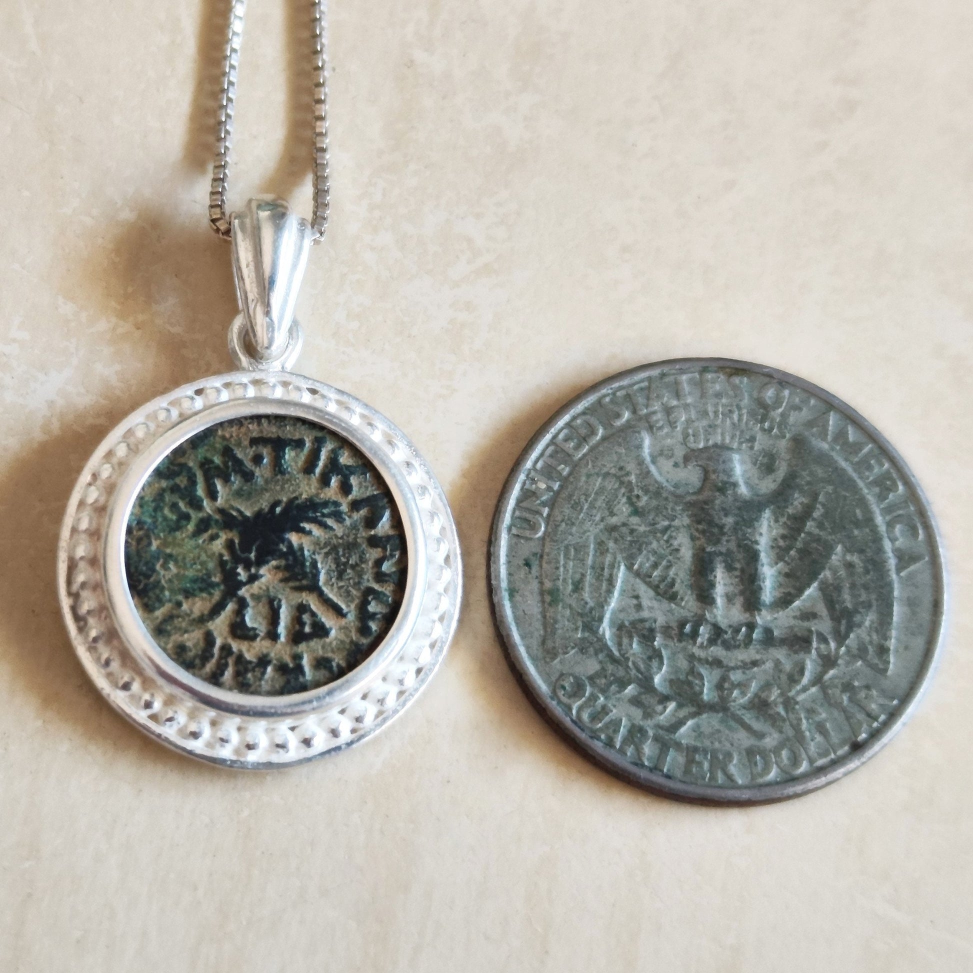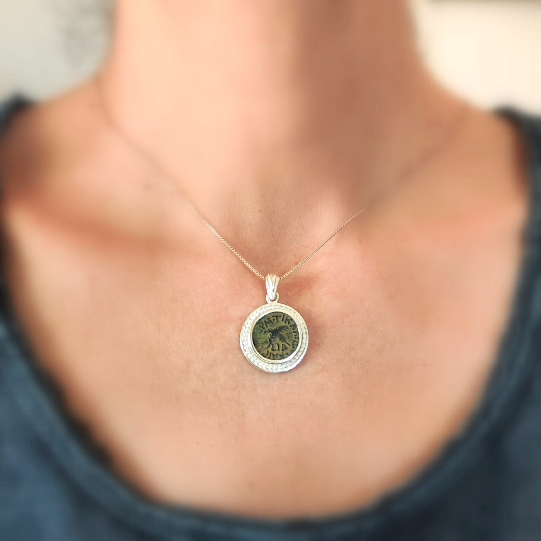 This Ancient Roman Coin Silver pendant features a real antique Roman Provincial bronze coin, issued under Emperor Claudius - It is approximately 2000 years old.