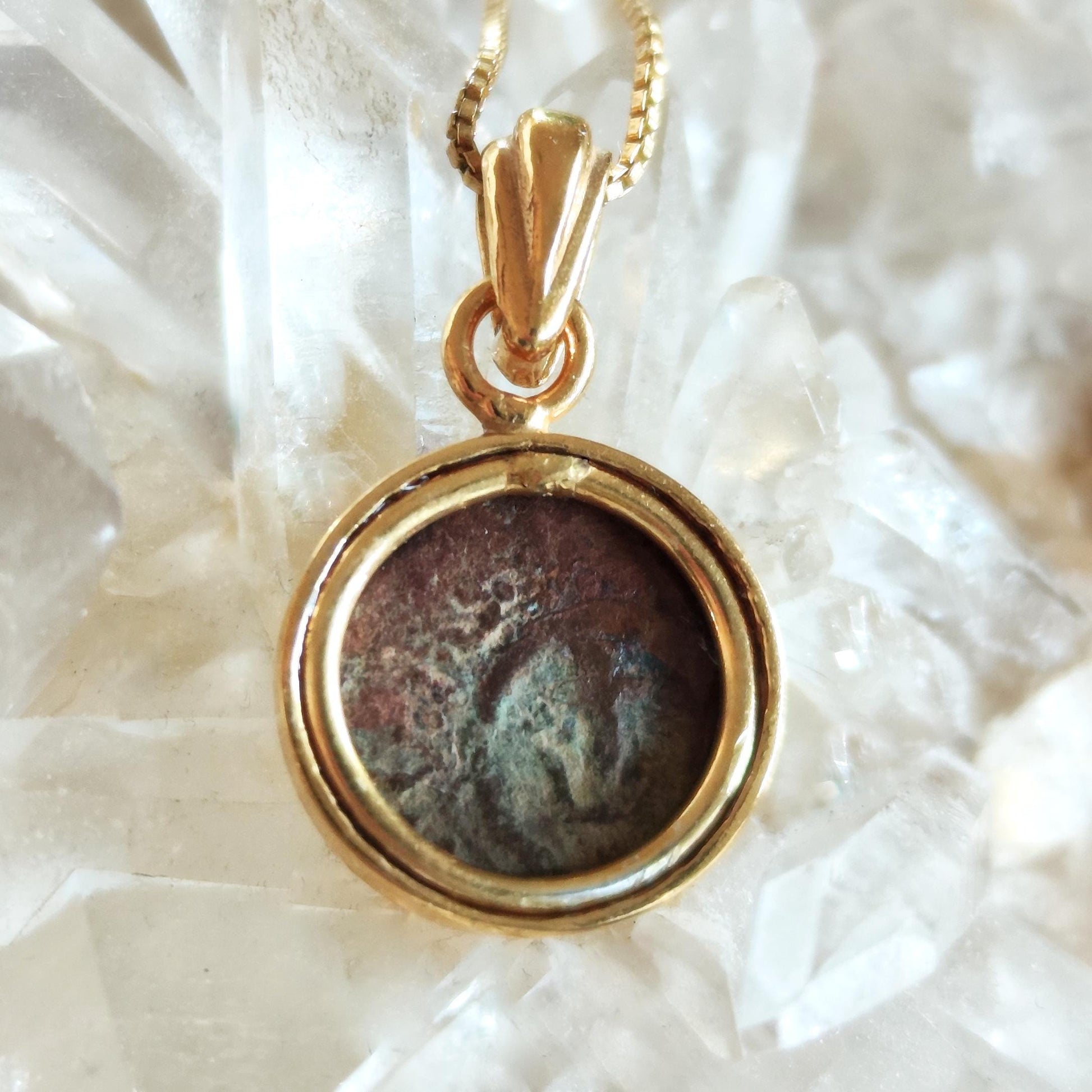 ♦ The coin is set in a minimalist small bezel Made of 925 Sterling silver, and Plated with a thick layer of 18K Gold, with an elegant bale.