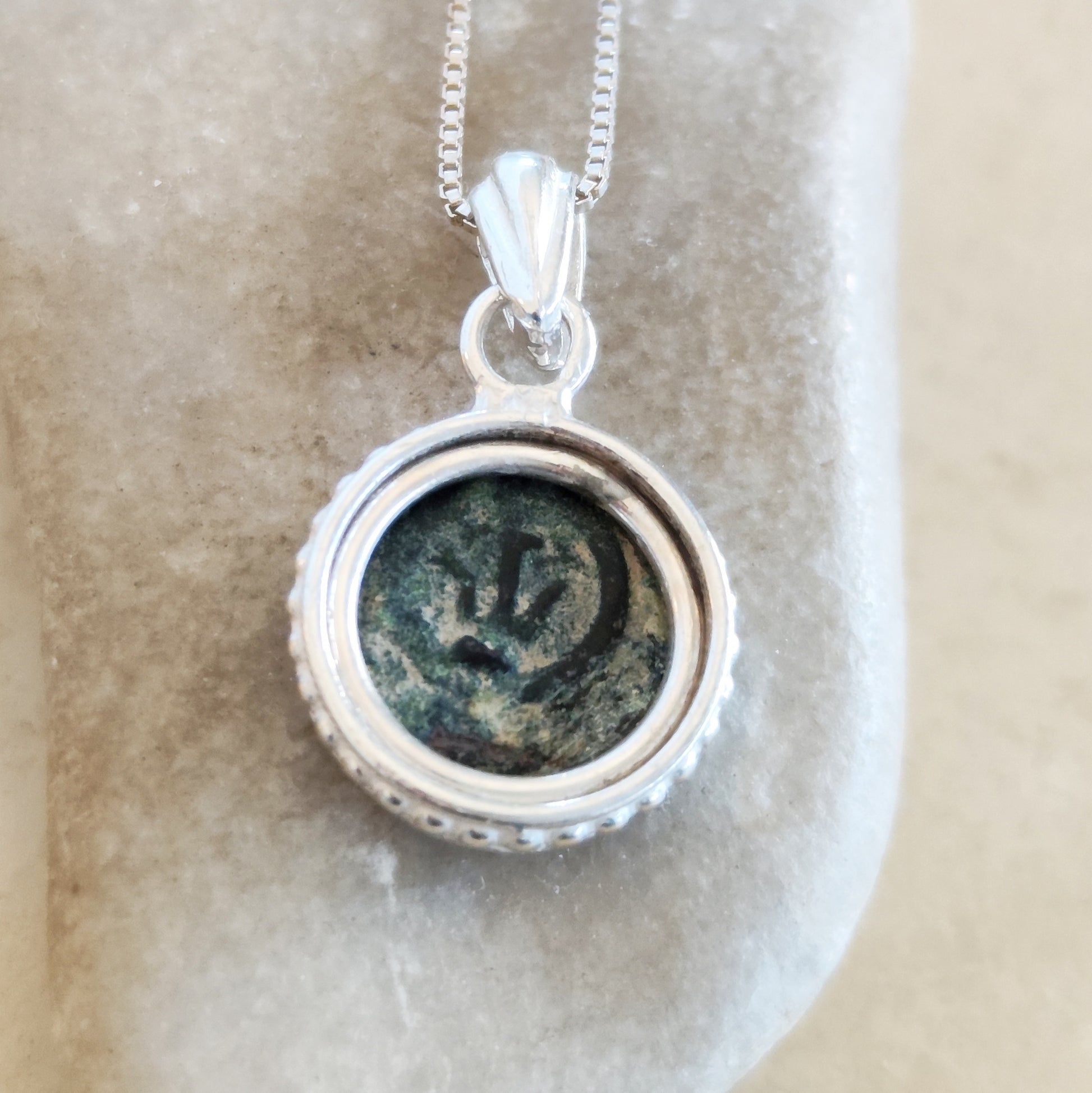 Authentic Biblical Widow's Mite Coin Silver Necklace, Christian Small Medallion, Gift Idea for Her