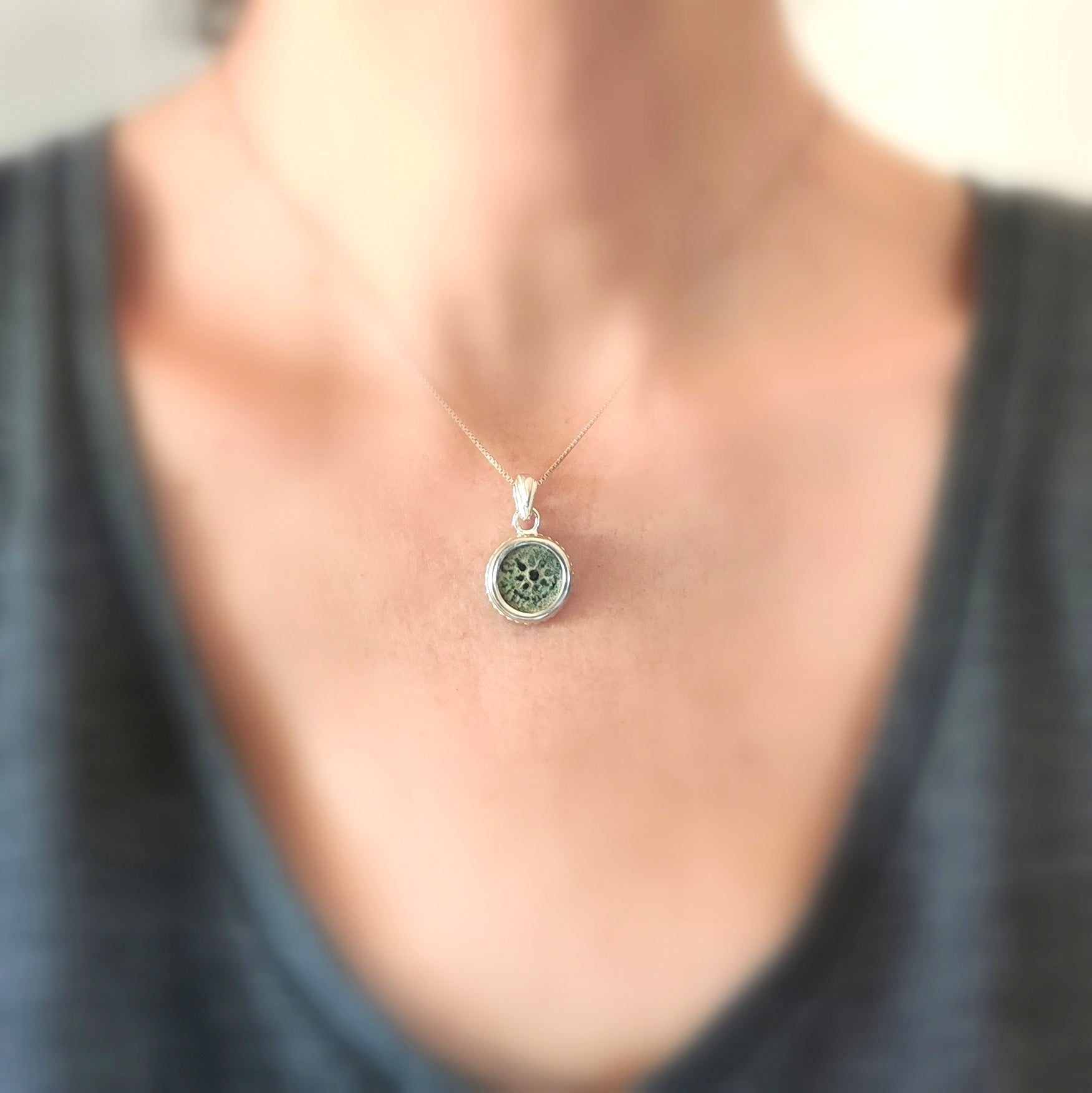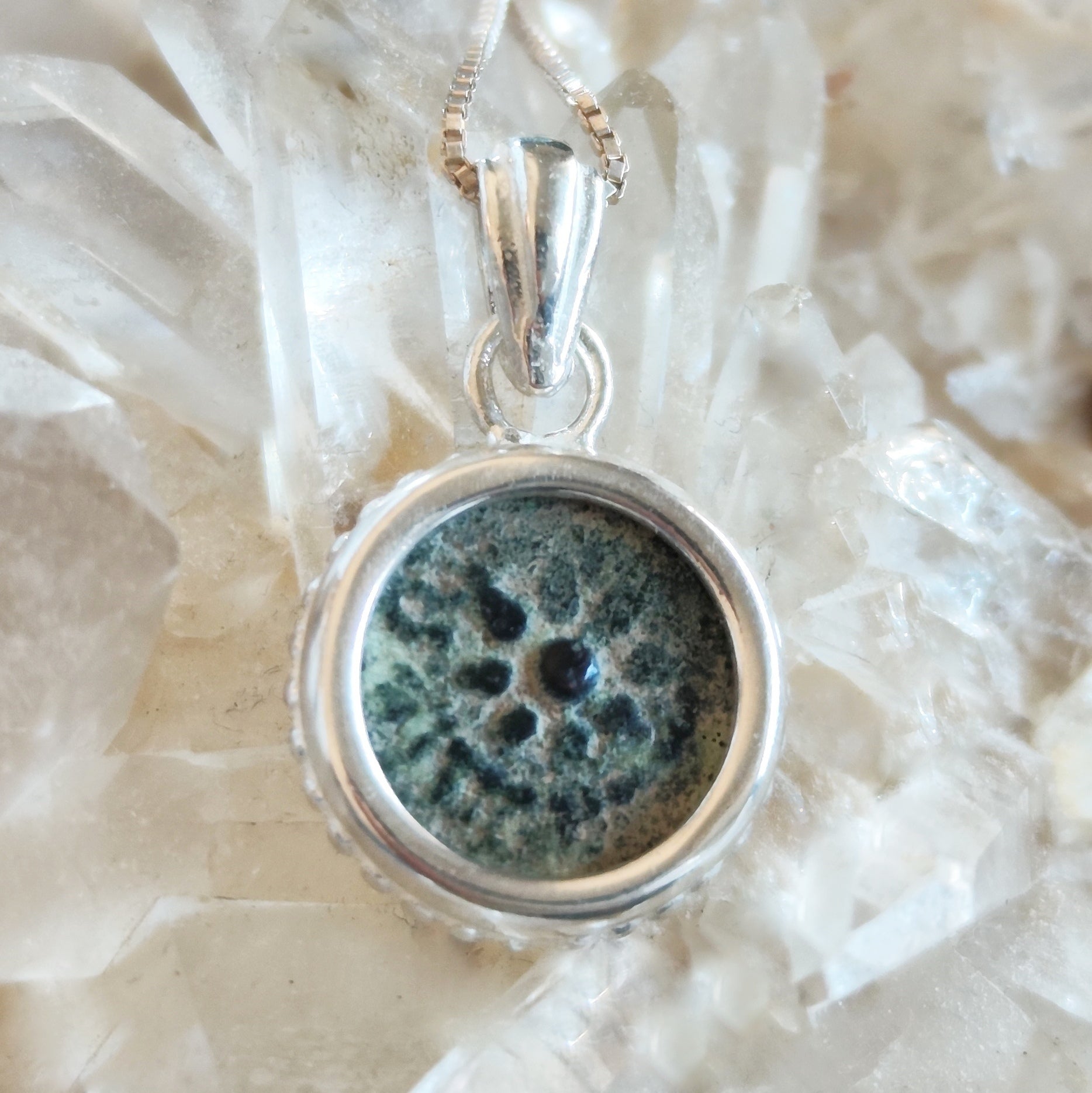 A meaningful Christian Religious gift idea for Men, Women or Youth , this storytelling necklace is set with a Real Ancient, appx. 2000 years old, widow's mite coin, mentioned in the New Testament. Jesus parable comes alive with this pendant, featuring an authentic Mite coin that was widely circulated in the time of Christ. “And Jesus sat over against the (Temple) treasury and beheld how the people cast in money… And there came a poor widow and threw in two mites…” (Mk. 12:41-44) Excellent quality coin with many clear visible details of both the star in front and anchor on reverse. The coin has a beautiful light grey- brown patina. 👉 Please note that photos are taken under bright light, so the coin looks lighter and more saturated than in in regular daylight. **Including an Authenticity certificate from an Authorized antiquities dealer** ♦ The coin is set in a small newly designed elegant bezel, decorated around in antique style dotted pattern. Made of 925 Sterling silver, with an elegant bale. Pendant size: 0.6" (15 mm) in diameter. We offer this pendant with or without a chain. You can choose an 16" /18"/ 20"/ 22" silver box chain. ♥ To shop Barr Designs on Etsy -> BarrDesigns.etsy.com ♥ Find us on Instagram -> instagram.com/BarrDesigns ♦♦ UPS/FedEx Express shipping from Israel - 3-5 business days delivery at a special price of 25$ (usually $45). available upon checkout ♦♦ __________________________________________________ Want to see more of our Widow's Mite Collection? click here: https://www.etsy.com/shop/barrdesigns/?etsrc=sdt§ion_id=5338955