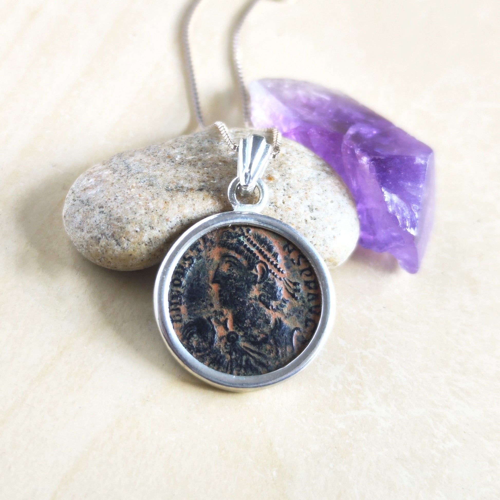Authentic Roman coin necklace, Antique Constantine son bronze follis silver medallion, men women pendant, Ancient jewelry, unisex gift idea