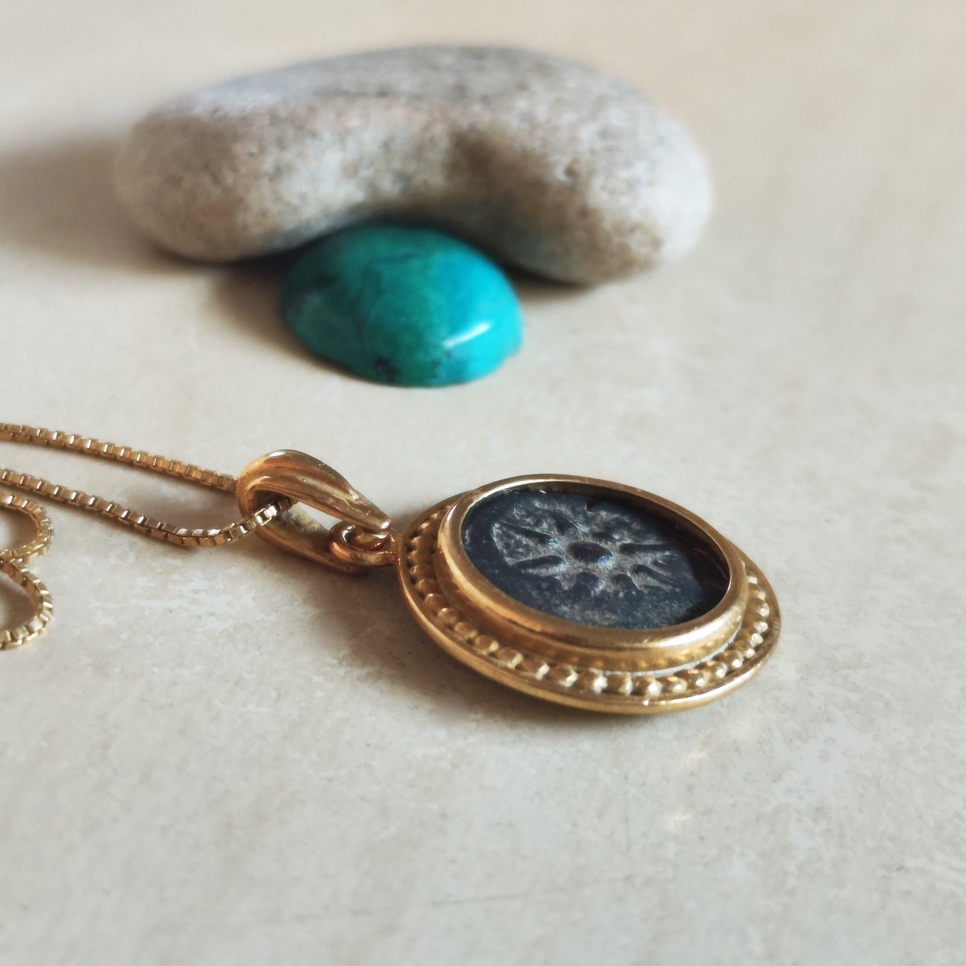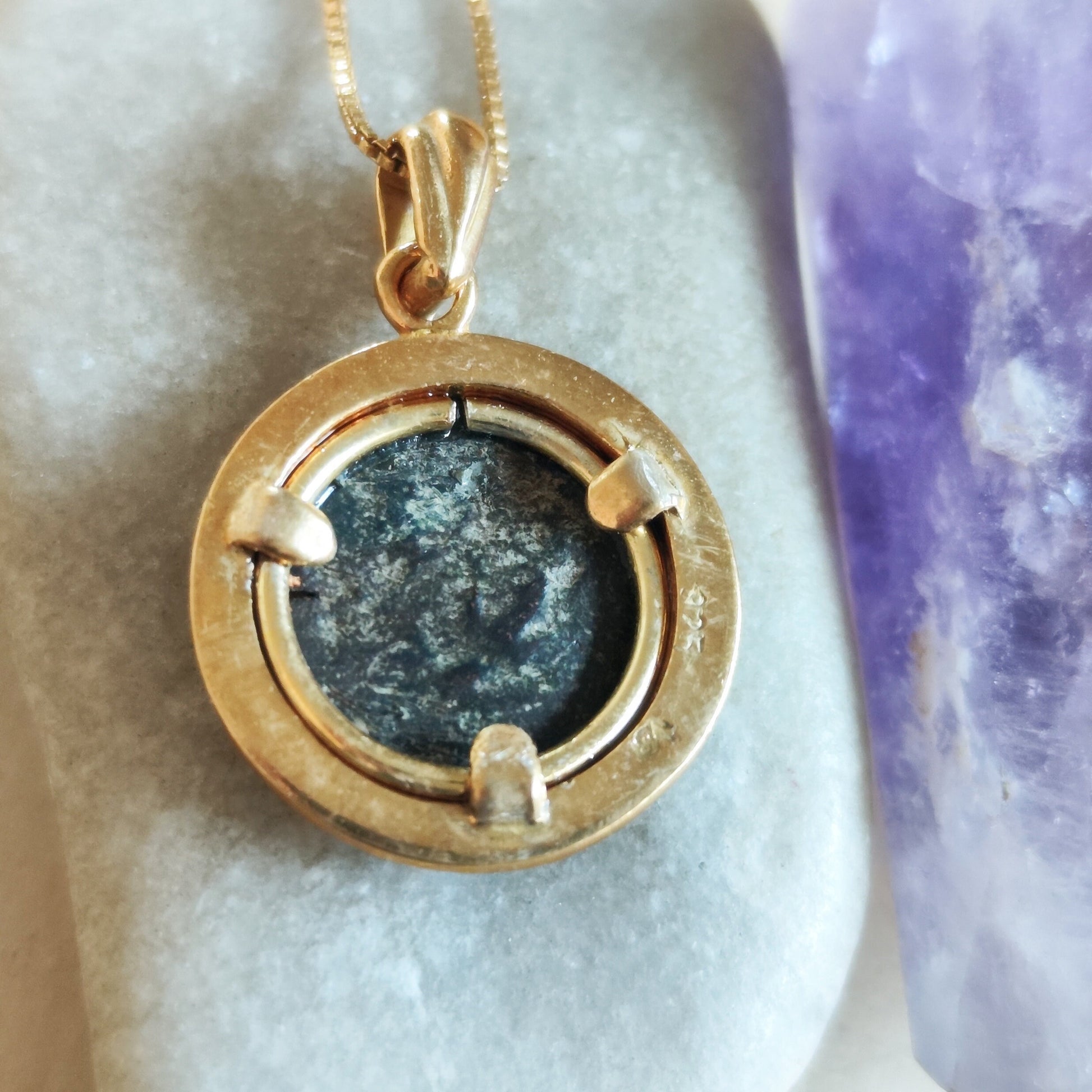 This Unique pendant features an exceptionally large Real Antique widow's mite coin, appx. 2000 years old coin.