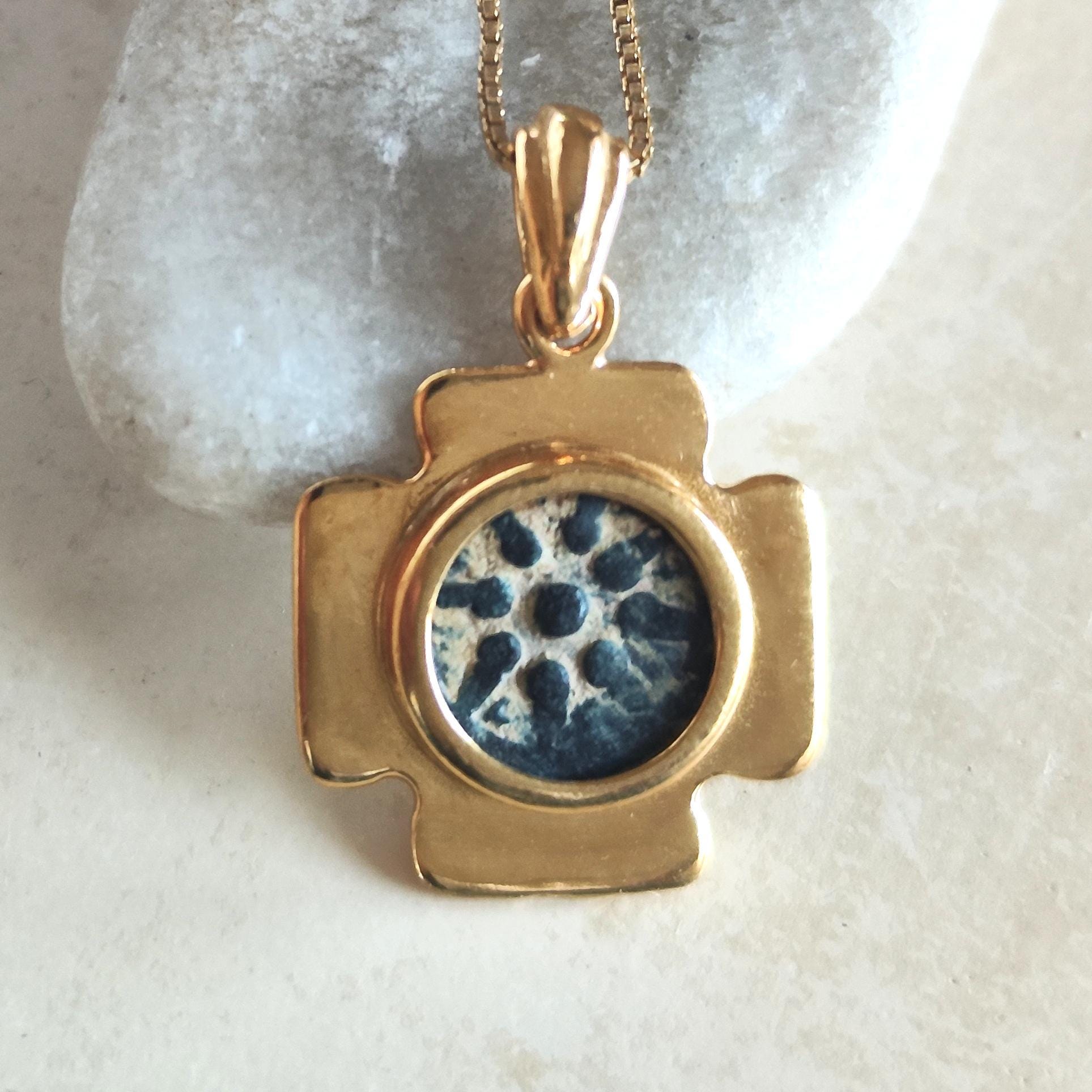Authentic Widow's Mite Coin Cross Necklace, Jerusalem Cross Gold Plated Pendant, Christian Jewelry, Antique Coin Necklace, Jesus Coin Gift