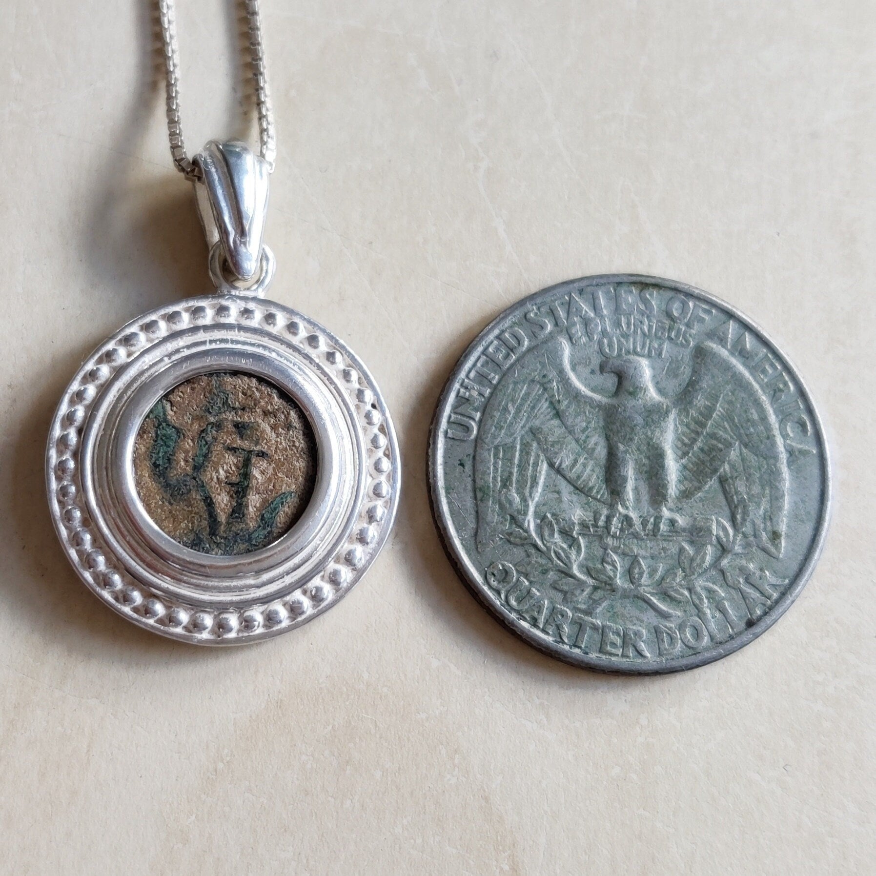 Bible Coin Necklace for History Lover, Genuine Biblical Widow's Mite Silver Pendant, Christian Gift for Men and Women