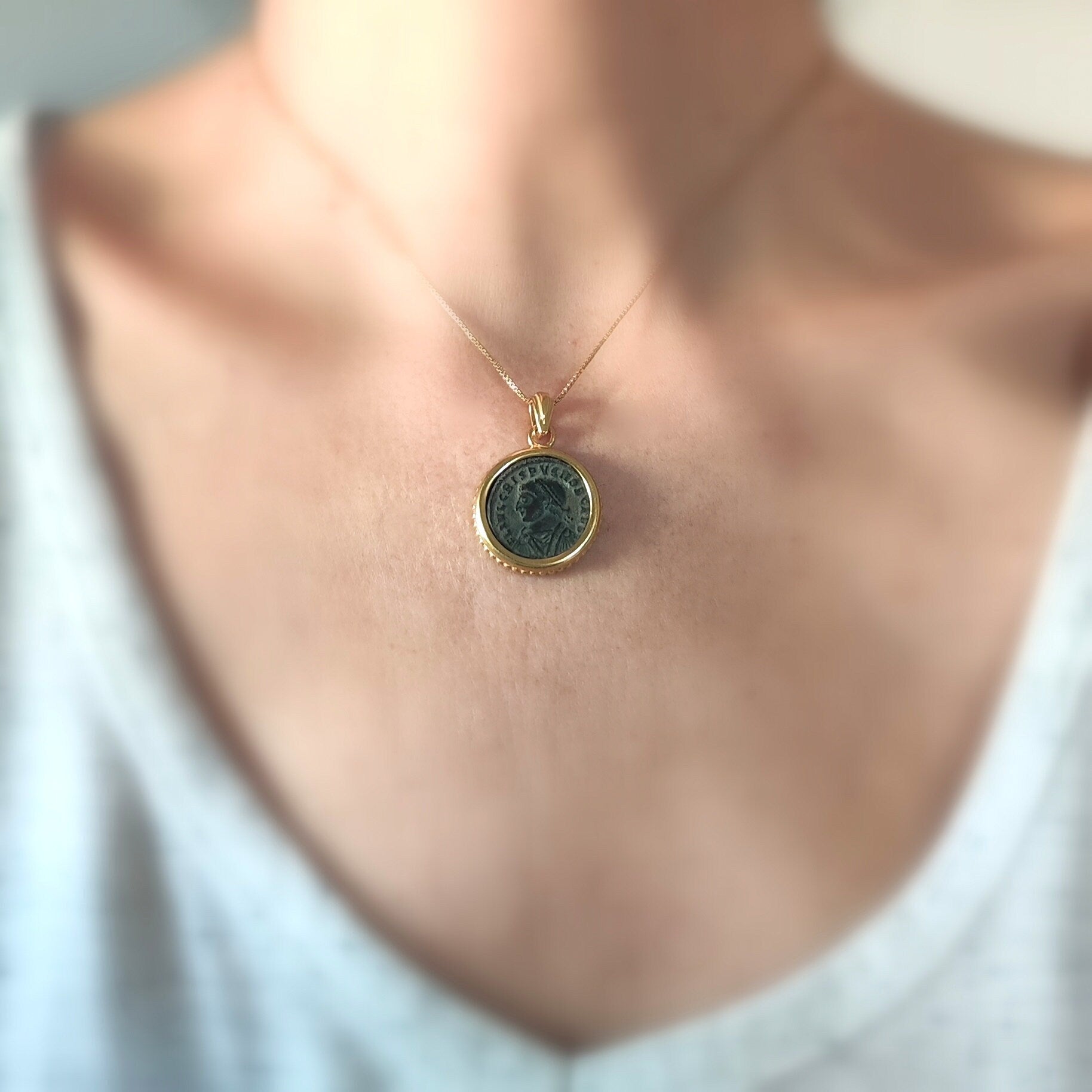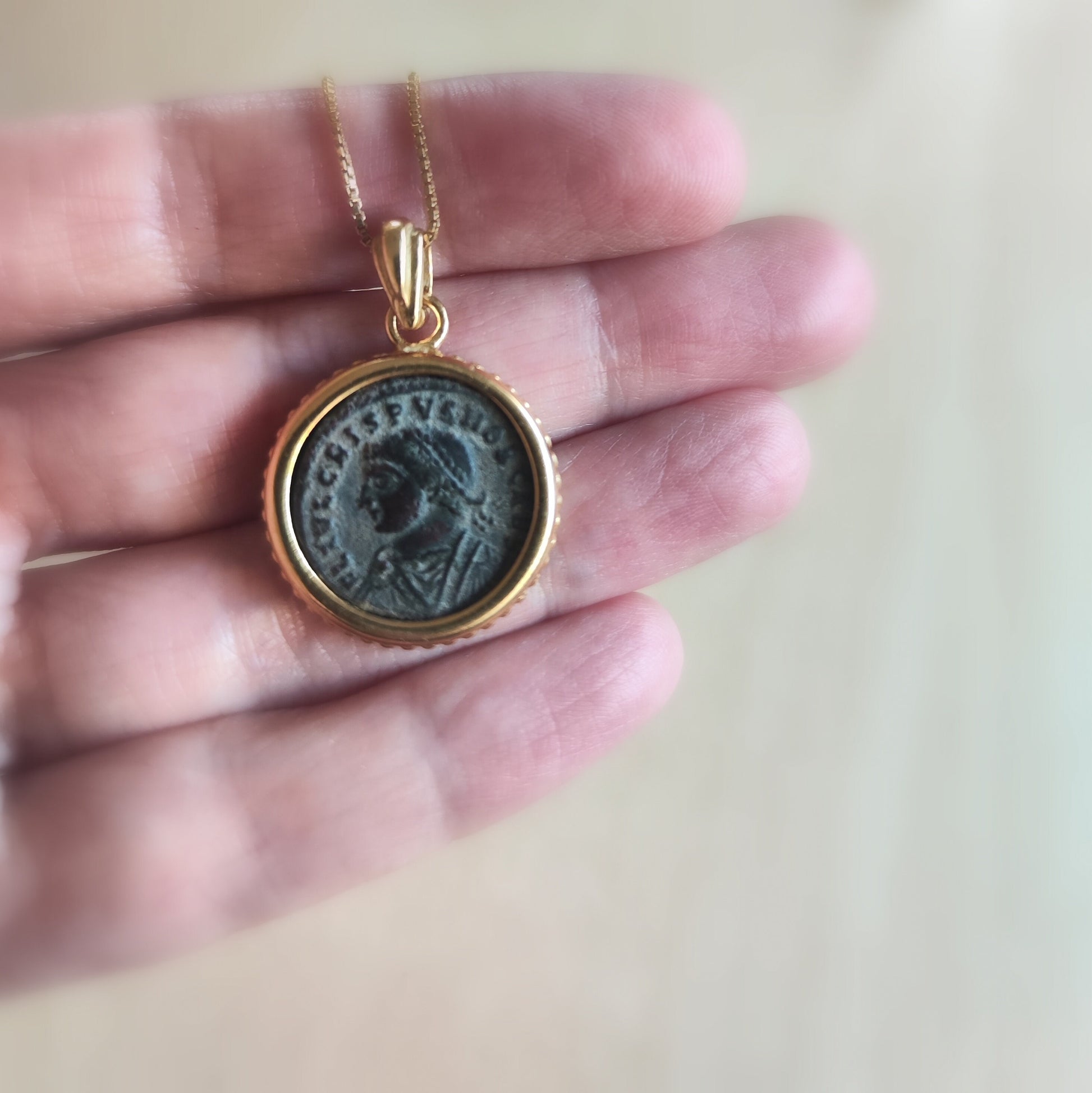 Certified Antique Roman Emperor Crispus Coin Necklace, Genuine Ancient Coin Gold Plated medallion, Women Coin Jewelry, Vintage Coin Pendant