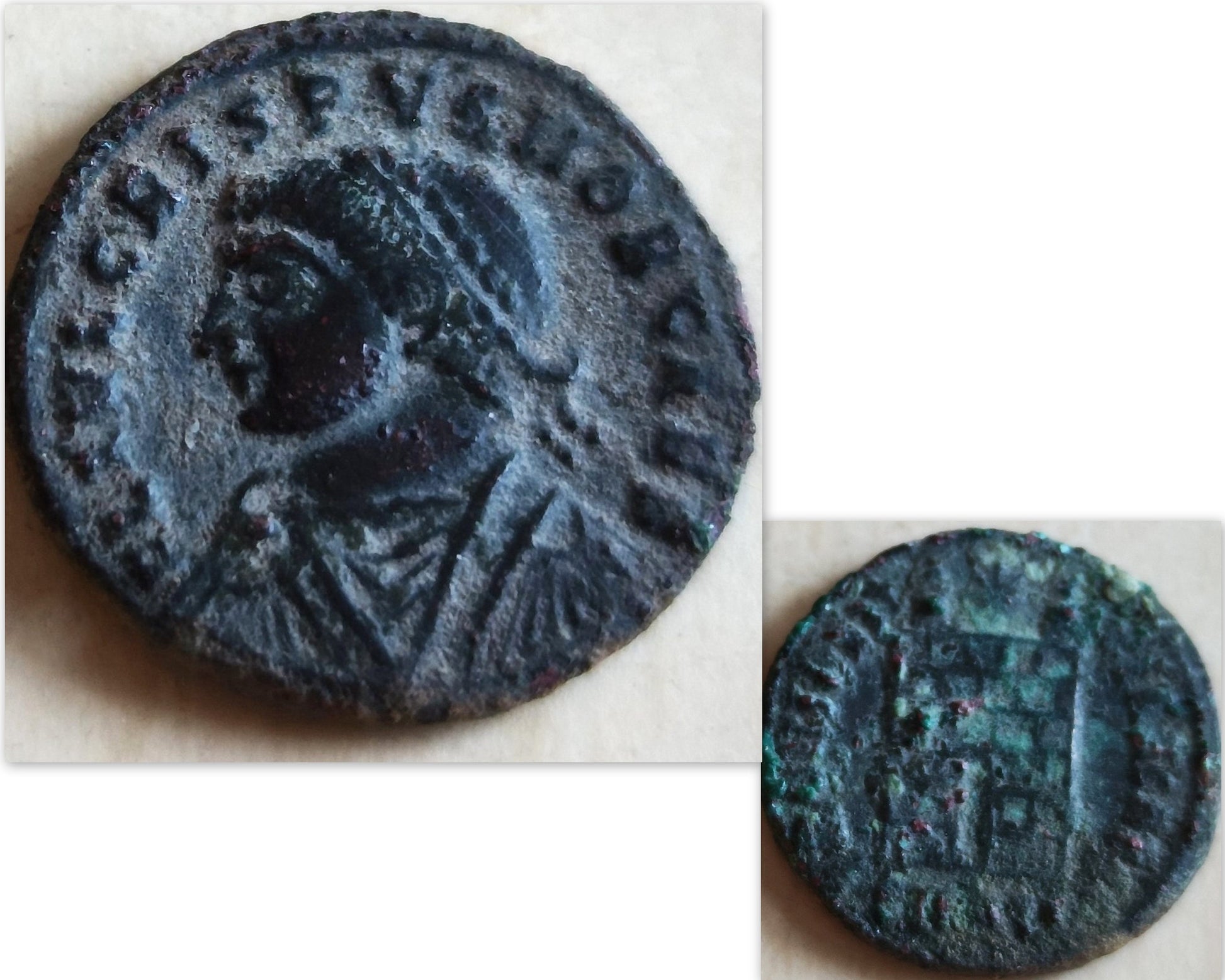 ♦ The front side depicts the profile of Emperor Flavius Julius Crispus, who was the eldest son of the Roman emperor Constantine the Great and his junior emperor from March 317 until his execution by his father in 326.