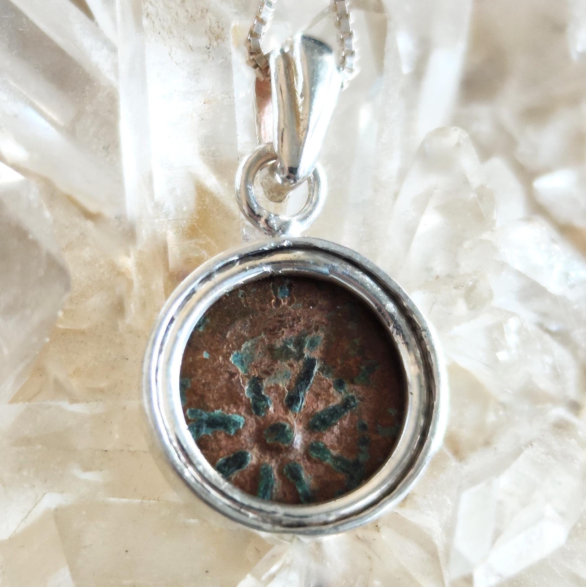 Christian Artifact Silver Pendant for Men, Ancient Judean Widow’s Mite Necklace, Jesus Poor Widow Story Jewelry