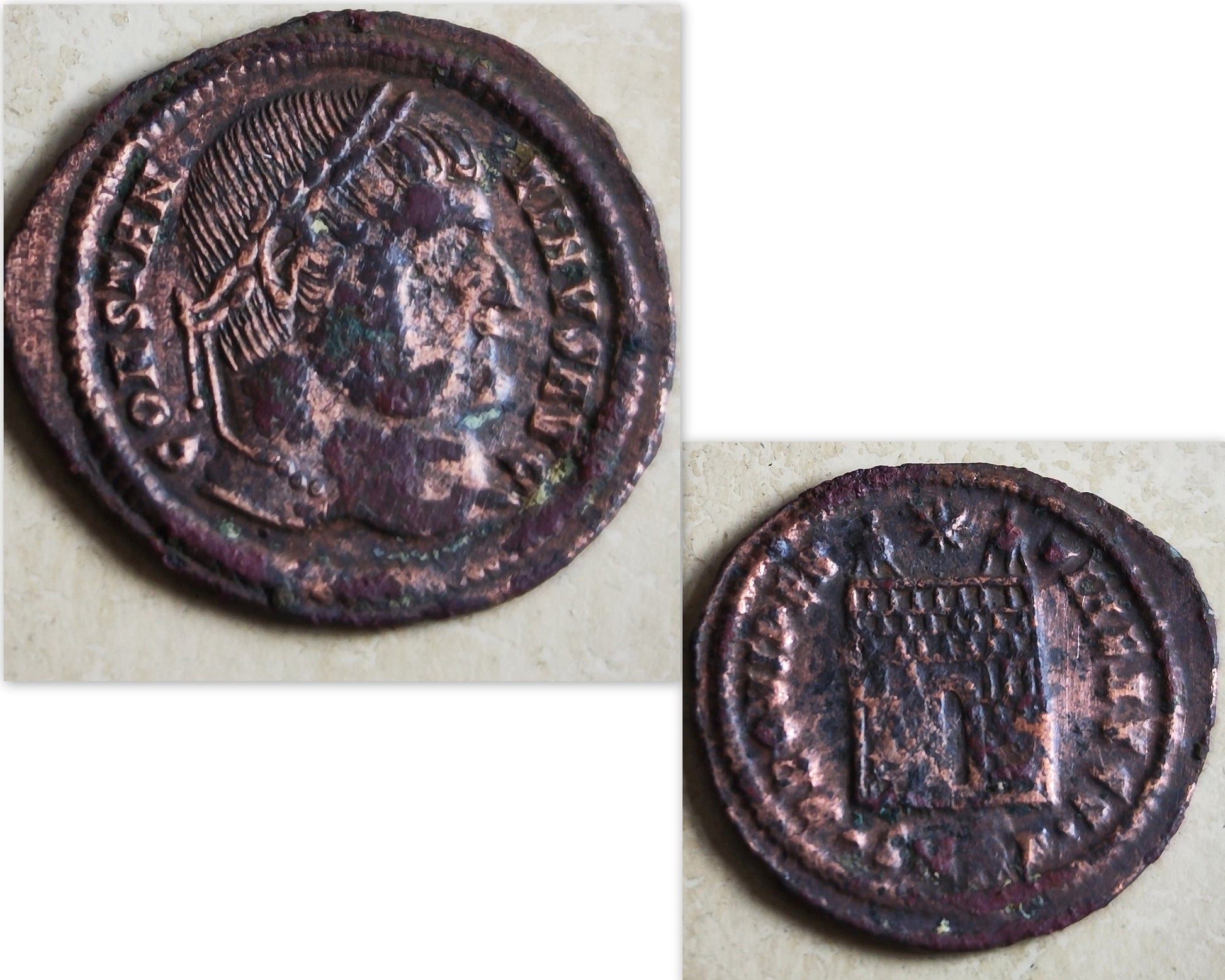A real antique Roman bronze coin of the first Roman Christian Emperor -Constantine the Great, approximately 1700 years old!