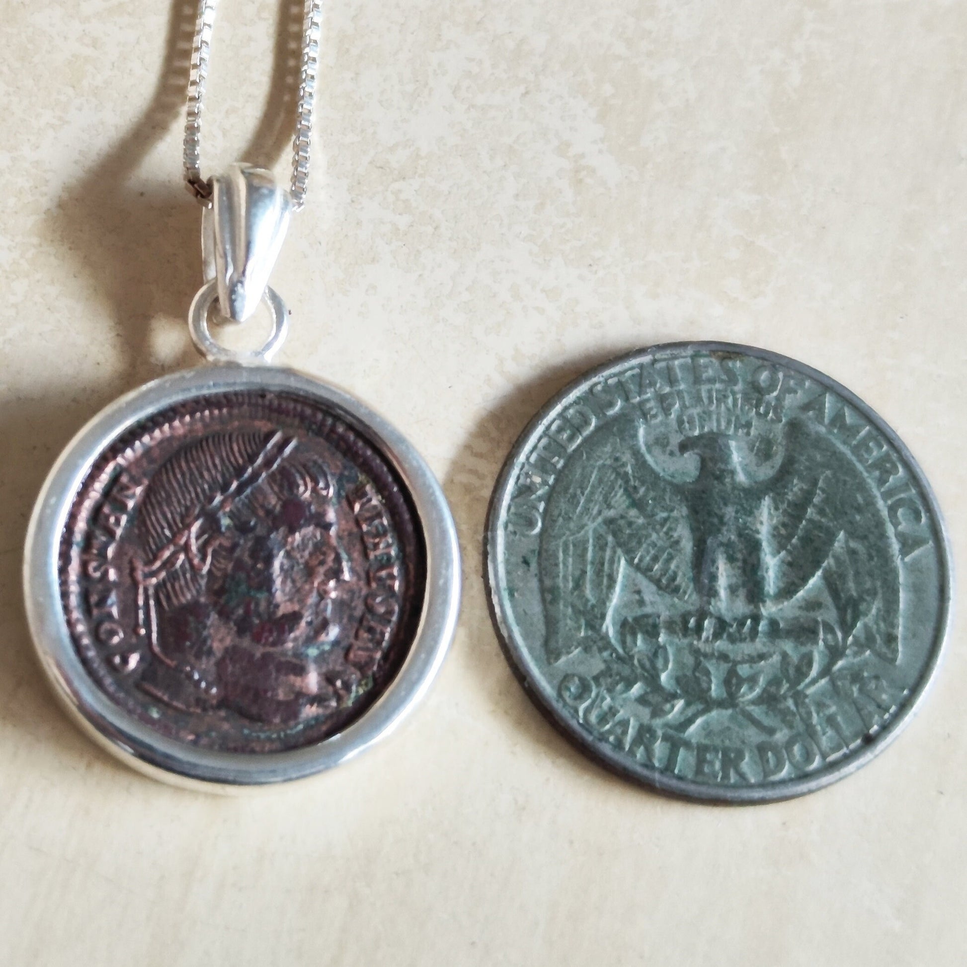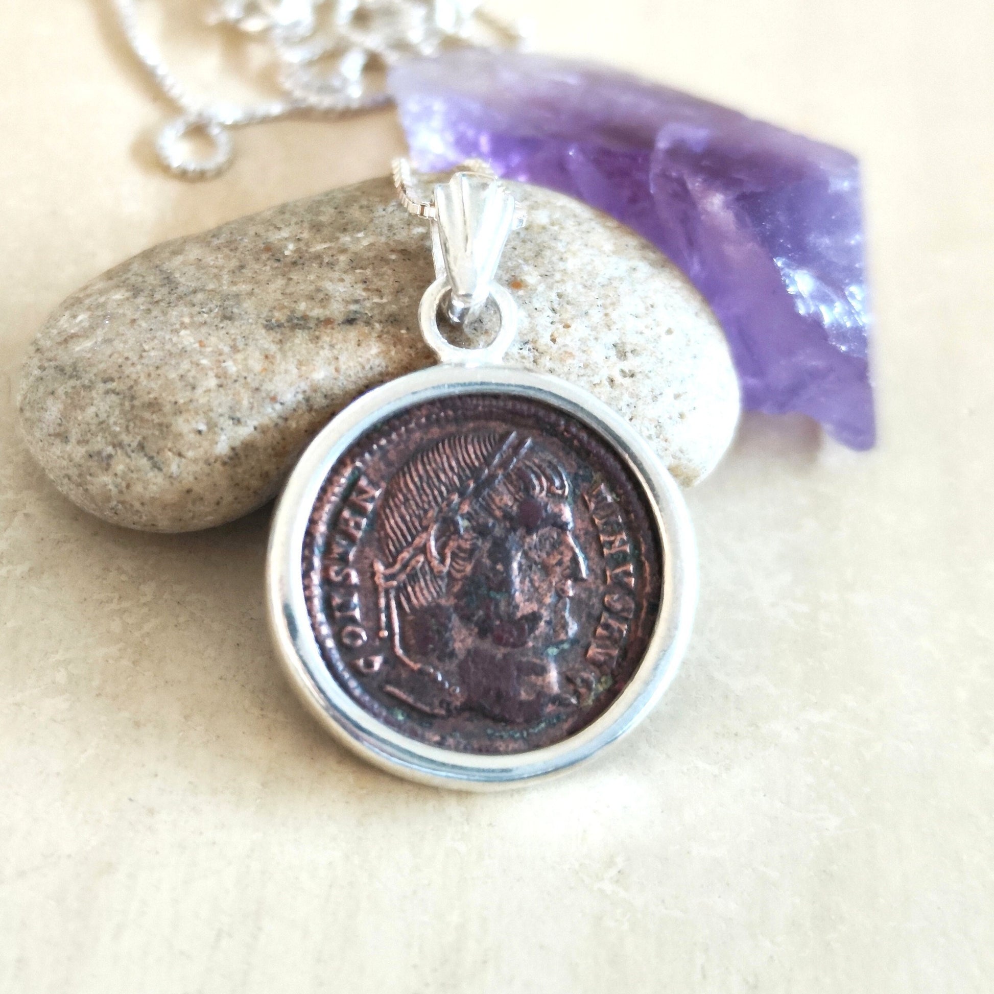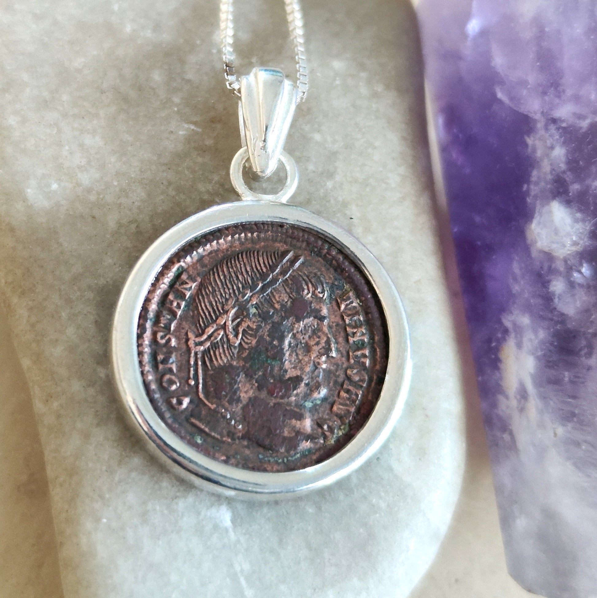 Constantine the Great Silver Pendant, Christian Coin Necklace, Roman Coin Medallion, Ancient Coin Necklace, Antique Coin Vintage Gift