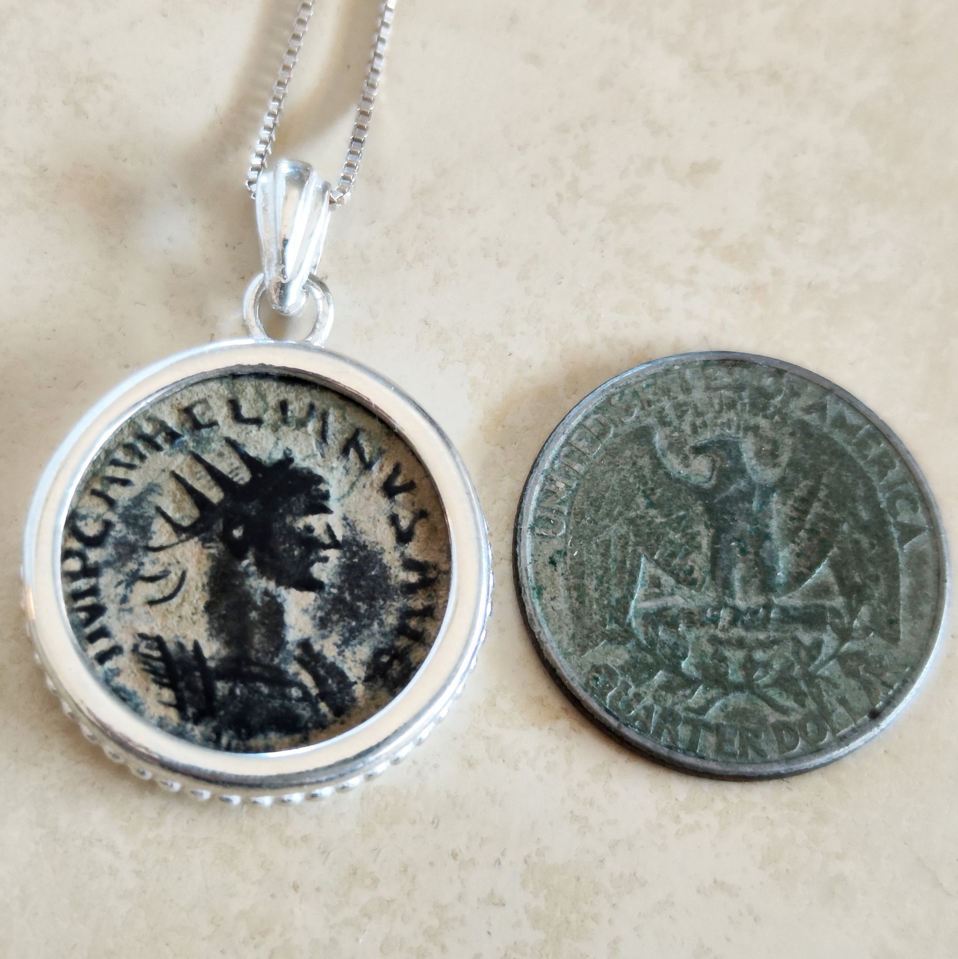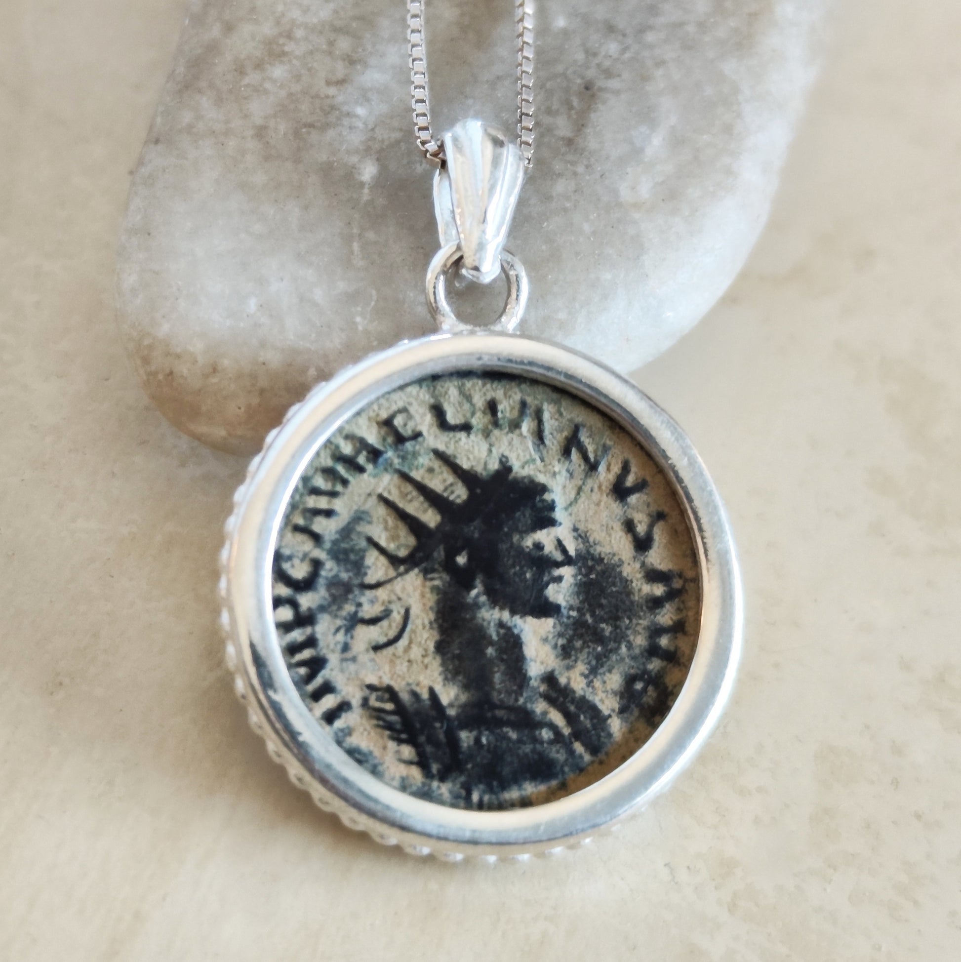 Emperor Aurelian Roman Coin Necklace, Authentic Certified Ancient Coin Silver Pendant, Antique Roman medallion, Vintage Pendant, unisex gift