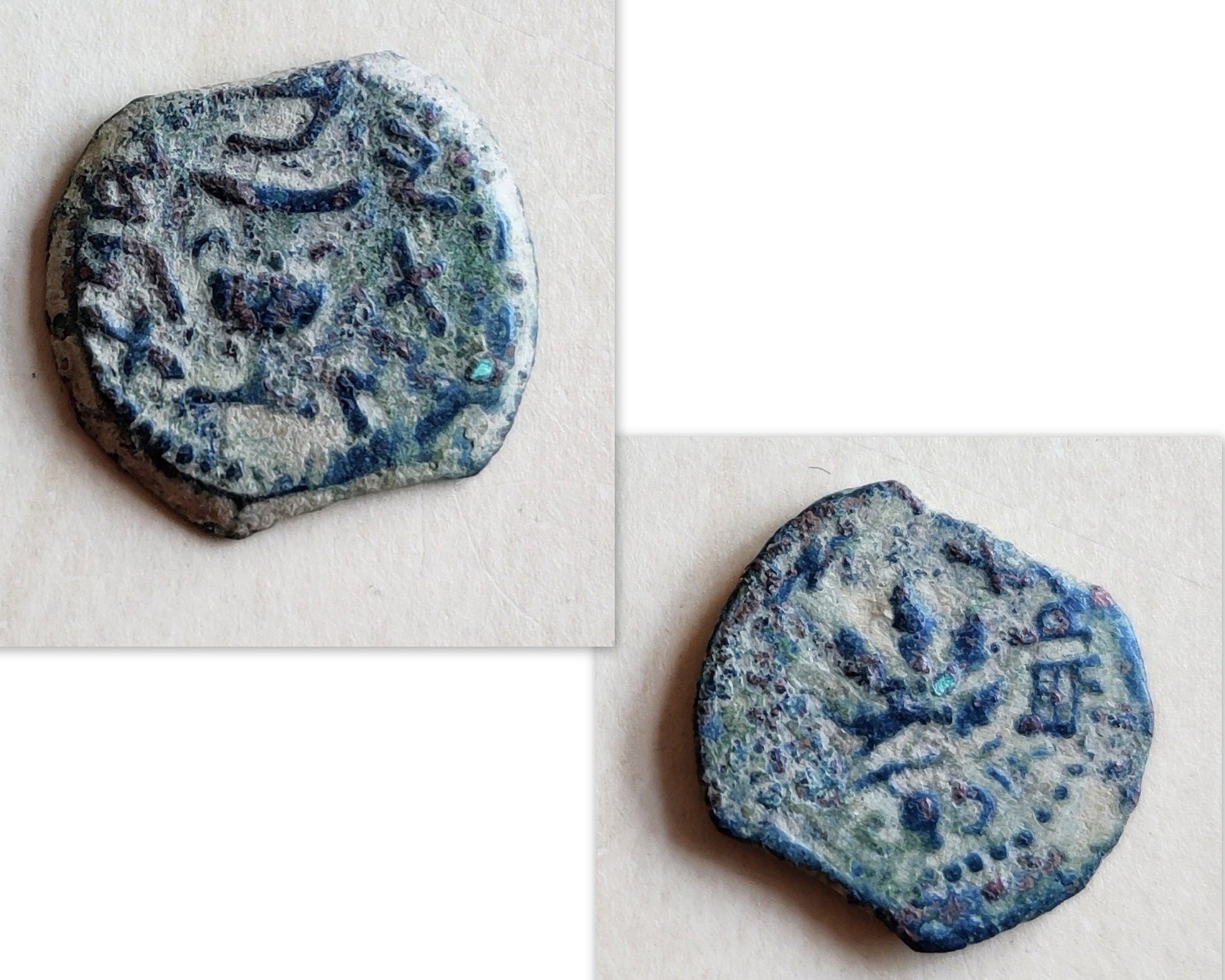 Bronze prutahs were issued in the second and third years of the revolt (67-69 A.D), at the time of the Second Temple, by Zealot faction in Judea in an attempt to restore independence from the Roman empire.