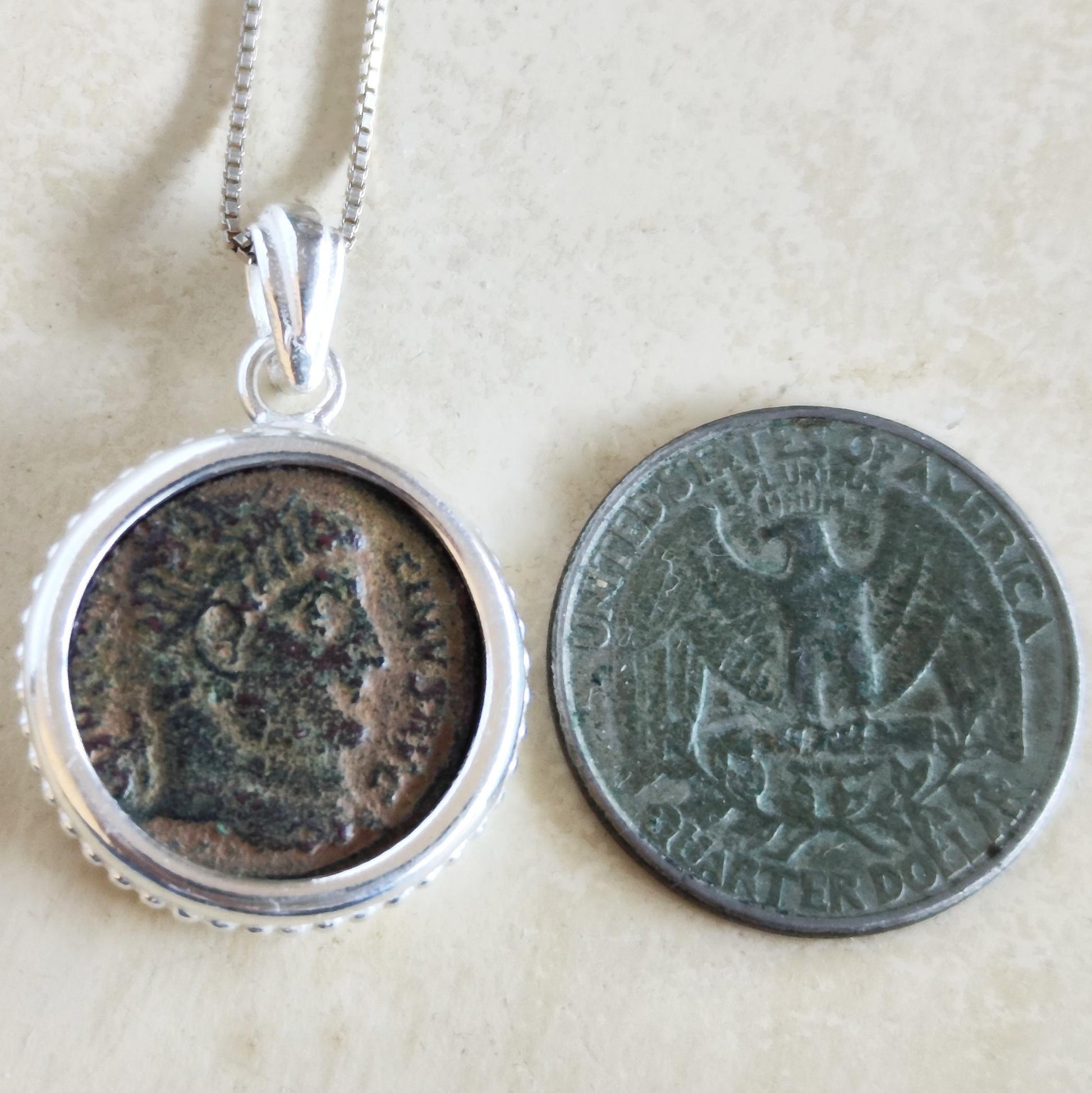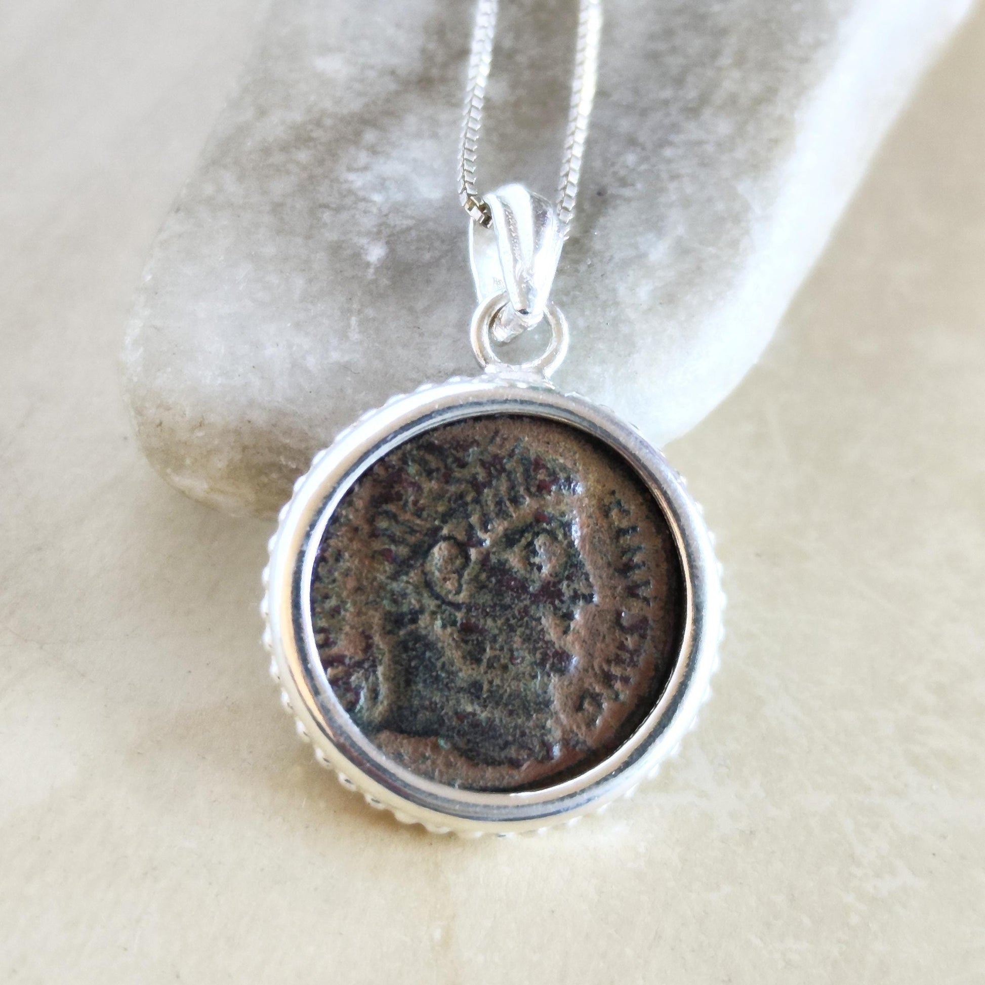 This genuine Roman coin Silver pendant of Emperor Constanine the Great, features a real ancient coin that is around 1700 years old.