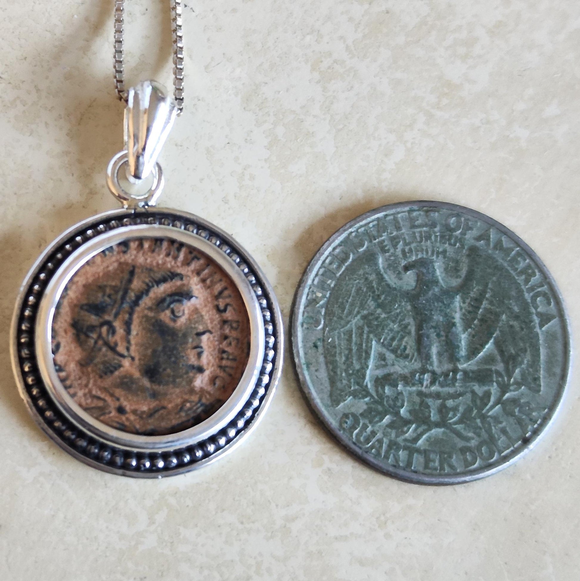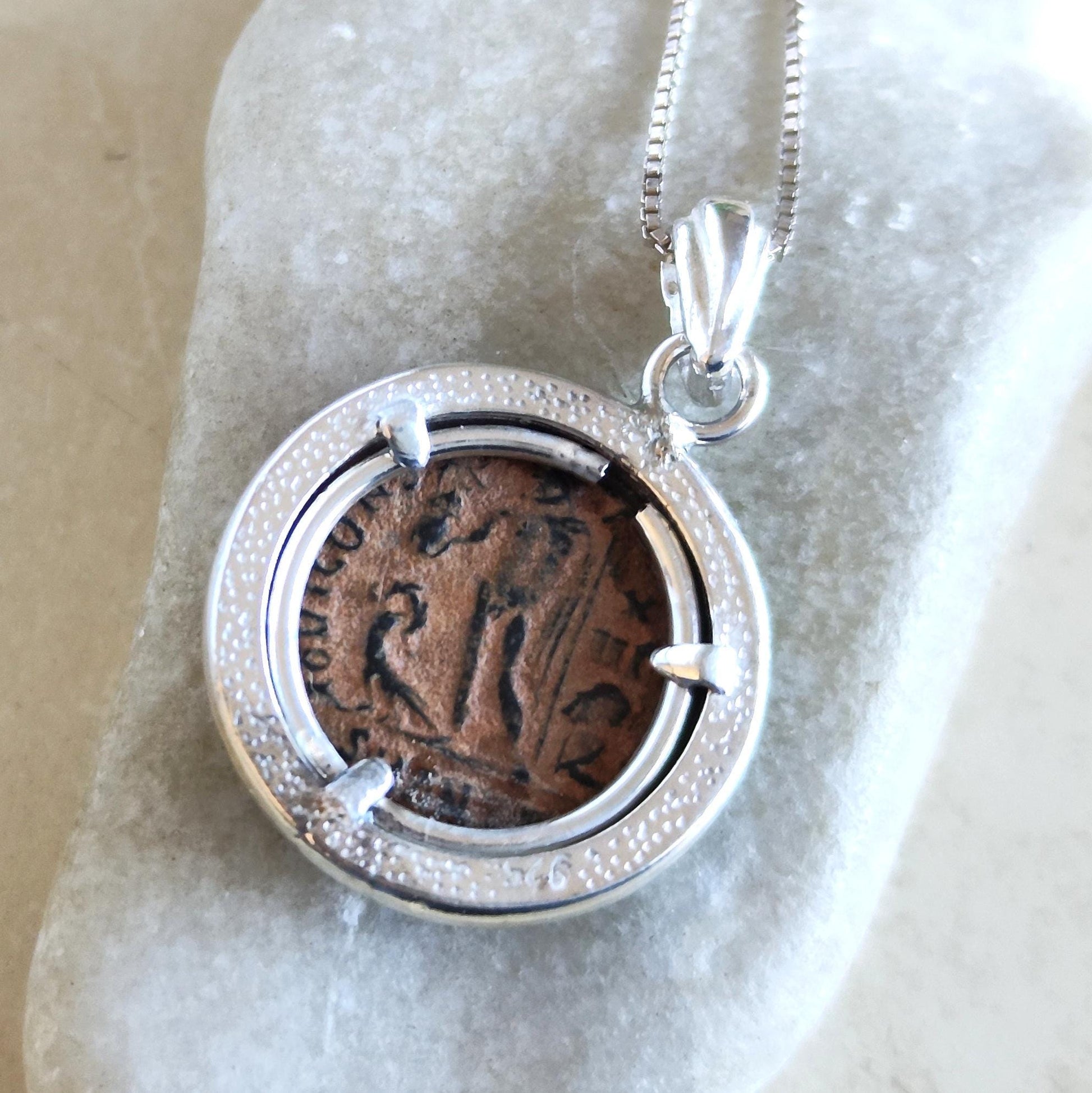 Antique Christian Emperor Constantine the Great Bronze Coin set in a handmade 925 Silver pendant - Coin is approximately 1700 years old.