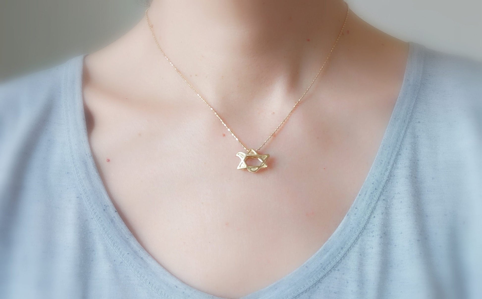 Gold Star of David Necklace, Dainty Jewish Pendant, Gold Dove Pendant, Jewish Necklace, Spiritual jewelry, Bat Mitzva Gift, Jewish Gift