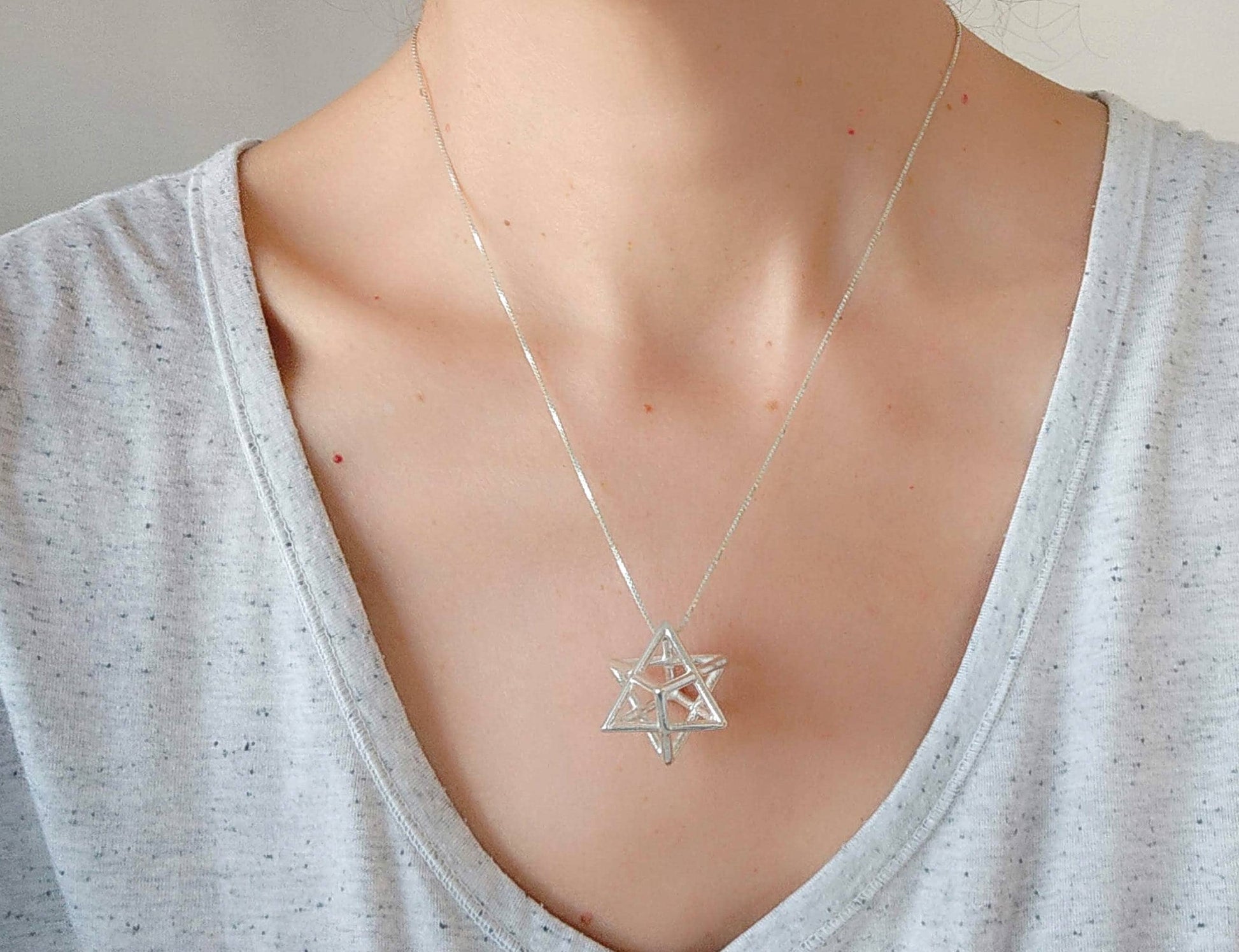 Silver Merkaba Necklace, Kabbalah Pendant, Kabbalah Necklace, Sacred Geometry Pendant, Mystic Jewelry, Jewish Jewelry, Energy Necklace
