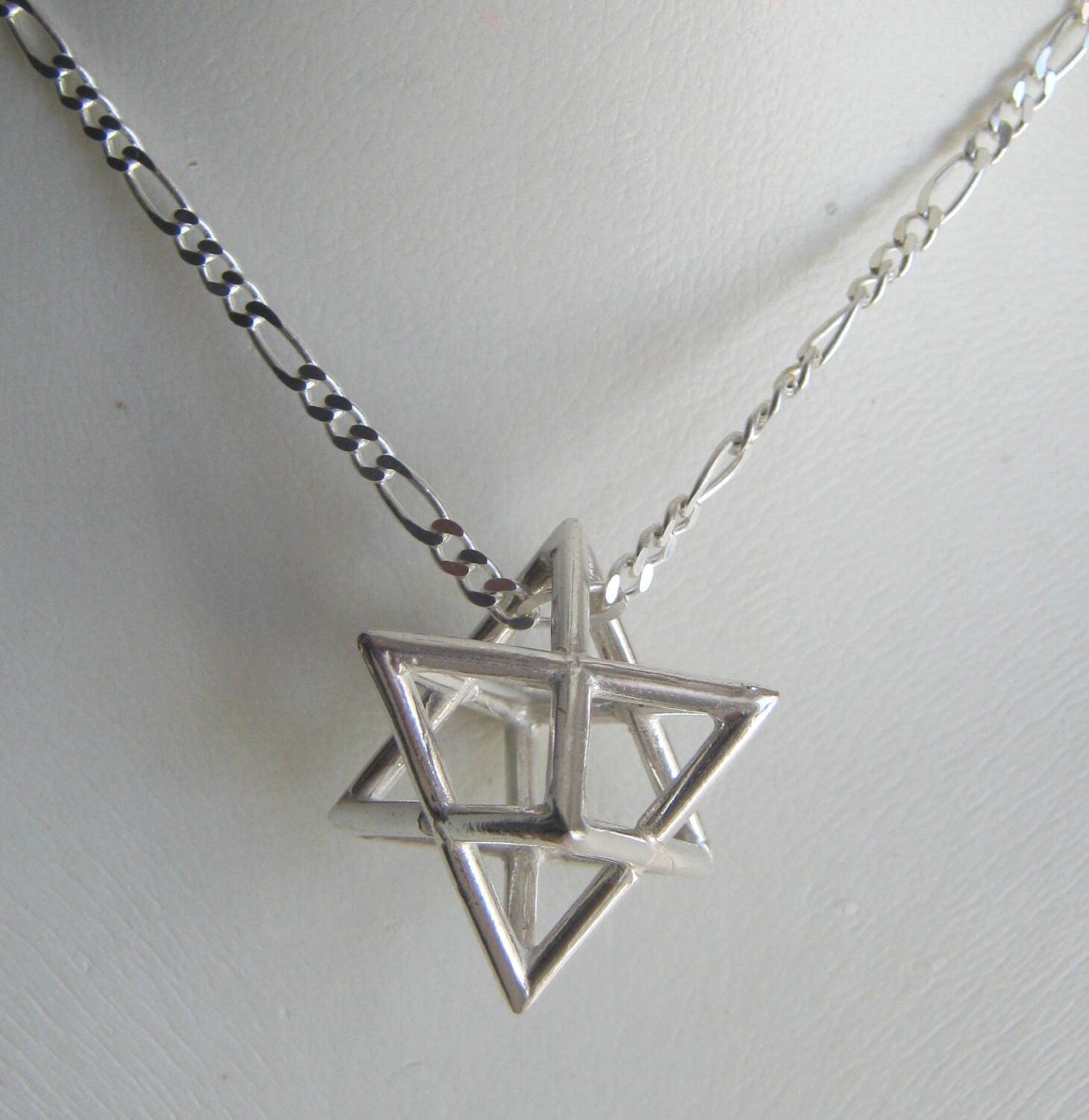 Sterling Silver Necklace with Merkaba Sacred Geometry Pendant Mystic Kabbalah Jewish Jewelry